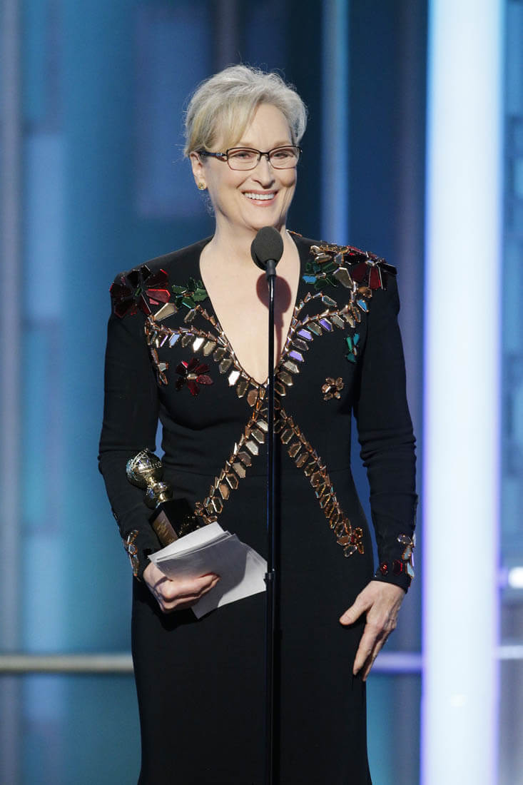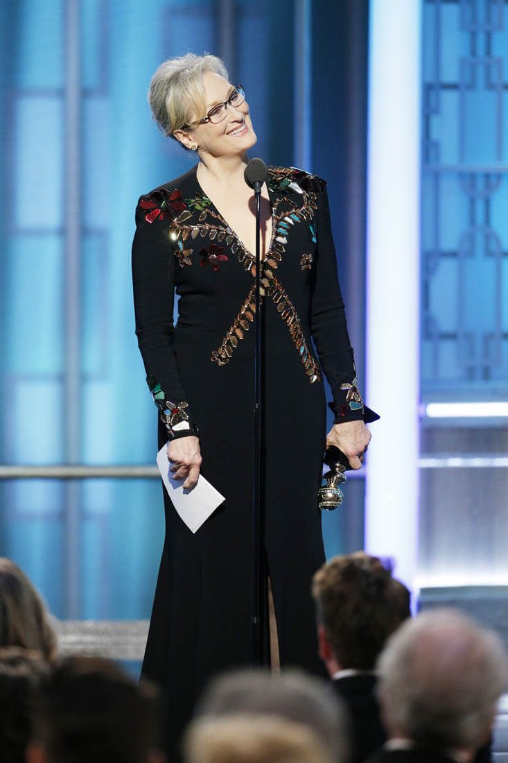 Also, did you forget, seconds into her speech, that it was actually an acceptance speech for her achievements? Because she tossed that away in a hot second to remind us all to have more empathy, to support the press, to remember that we need to take all our complaints and rants and do something about them, to stand up for the stuff we believe is too terrible to tolerate. “Take your broken heart and make it art.”