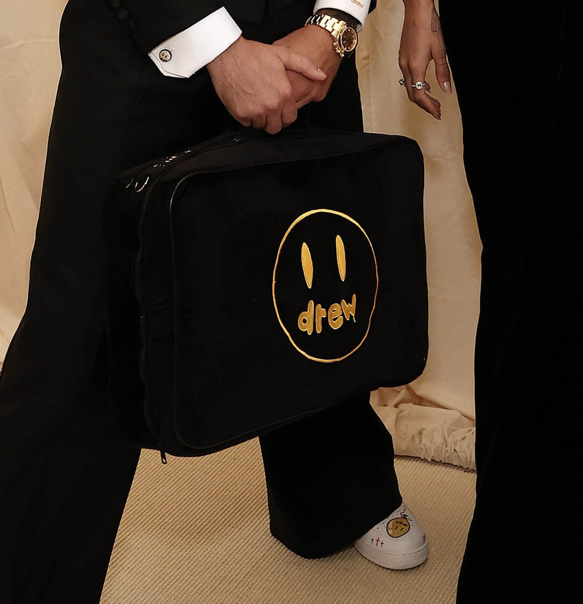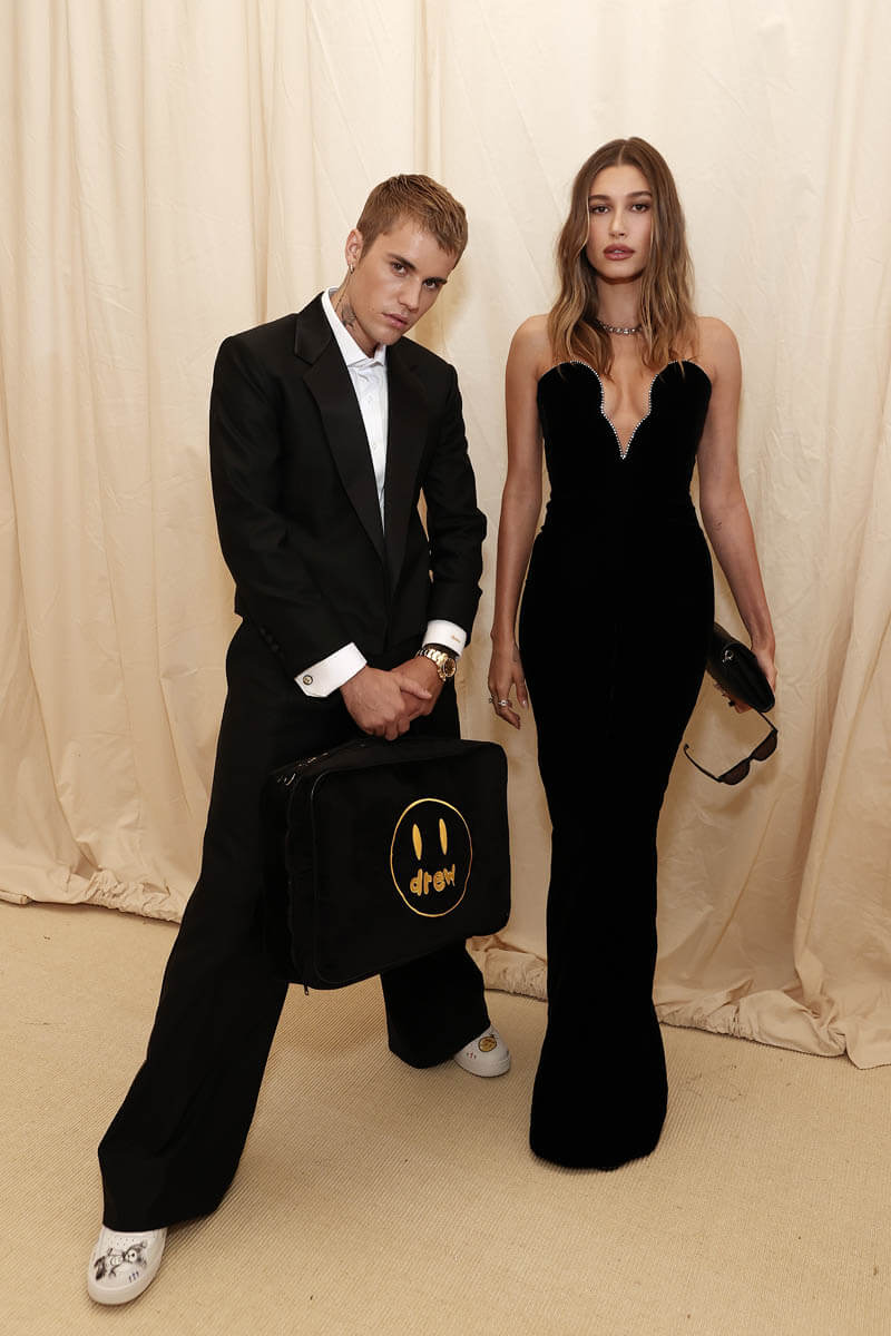 Justin and Hailey Bieber certainly went for a more chic and subdued vibe for their first Met Gala together. Hailey’s wearing Saint Laurent and get this, Justin’s suit is by Maison Drew. As in, the fancy branch of his Drew House clothing line of t-shirts and sweatpants logoed by an obnoxious yellow smiley face. I guess they’re moving into formal wear? They did a good job with his suit because it looks great on him. It’s the best he’s dressed in a while. And these wide-leg pants are much better than the wide-leg jeans he wore at the VMAs on Sunday. Ugh. I don’t know if I’m ready for wide-legs to come back yet.