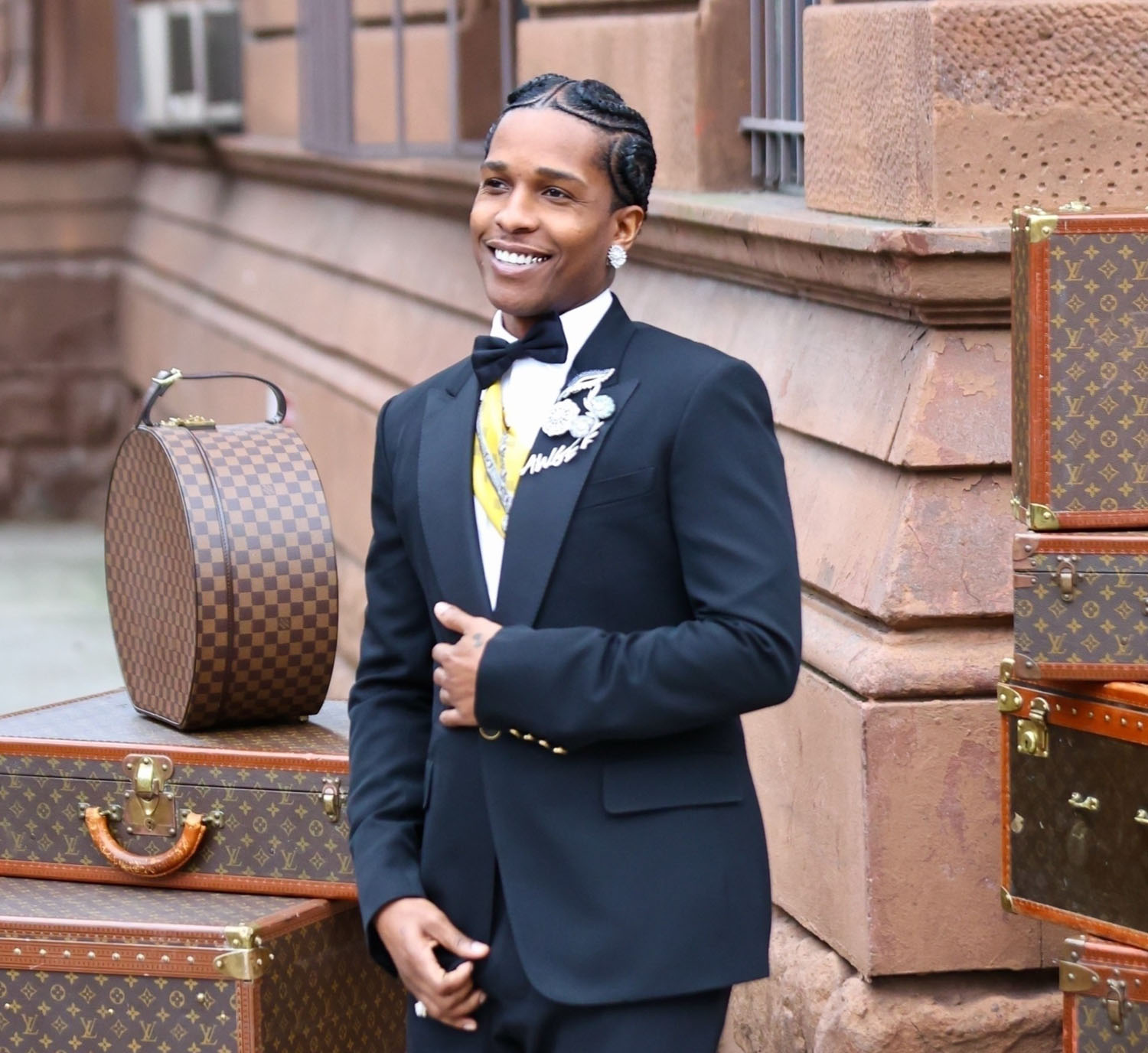 Vogue has been sharing behind-the-scenes videos throughout the day including a couple where Rocky talks about his baby photo shoots with Rihanna. He was also seen today doing a photo shoot surrounded by LV trunks in Harlem. Those photos are attached.