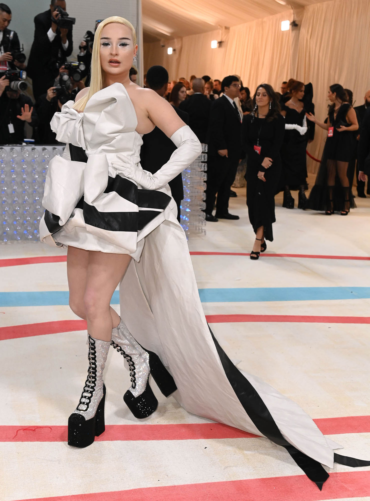 Kim Petras returned to the Met this year, after wearing a horse head bustier in 2021. She wore this black and white Marc Jacobs creation that looks a little dishevelled — which is never what I associate with Karl Lagerfeld.