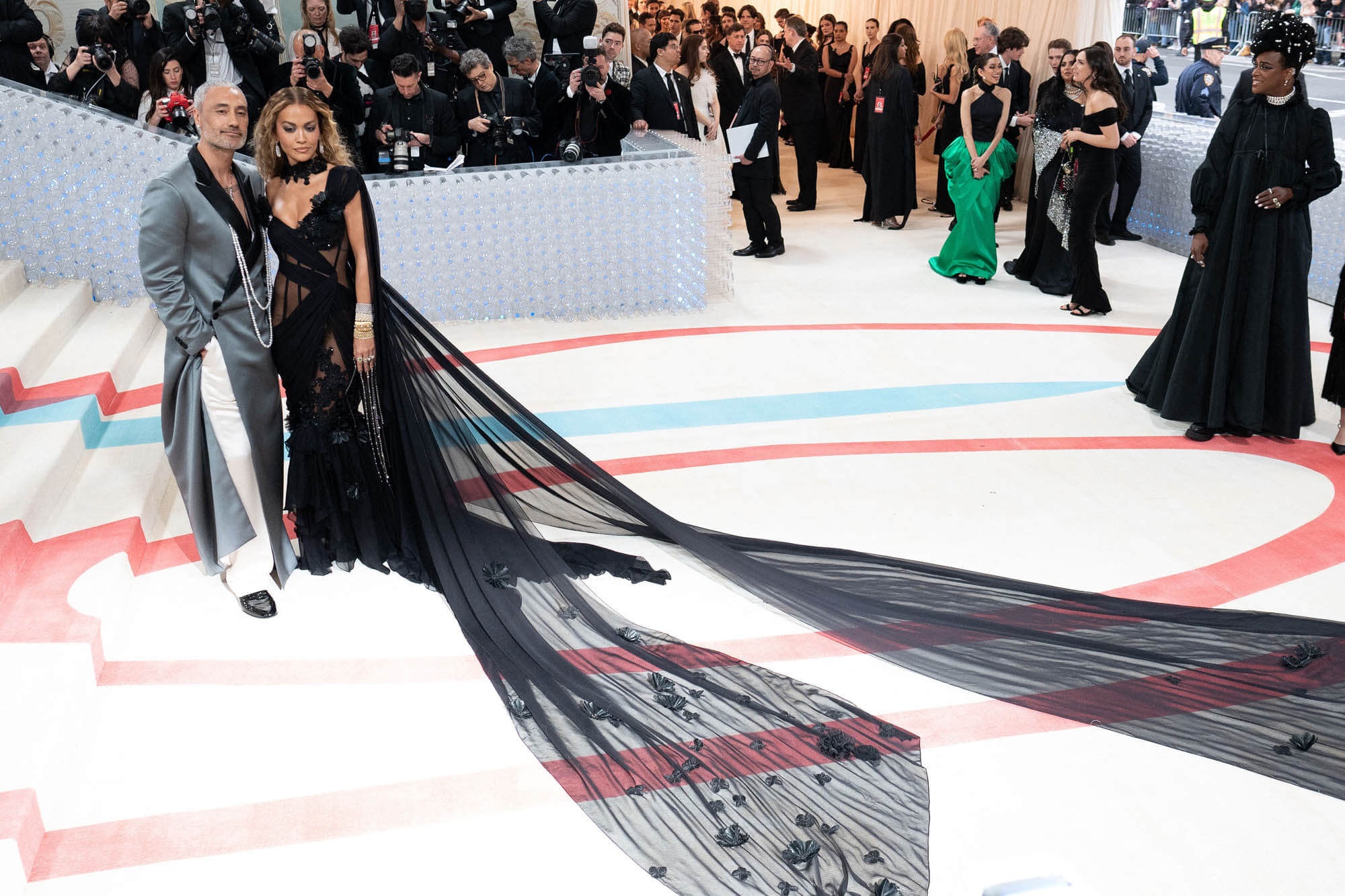 Taika Waititi and Rita Ora also returned to the Met Gala this year. I actually really enjoy them as a red carpet couple. Her dress is by Prabal Gurung. It’s nothing we haven’t seen before, but at least she brought some Met-worthy theatre with a dramatic train. My favourite part though, were the diamond chains hanging from each of her fingernails. And I’m still not used to seeing Taika with such short hair, but I really enjoyed his suit. It feels like a more feminine silhouette, but the way it’s styled and how Taika purposely posed with one hand in his pocket brings a complementary masculine energy.