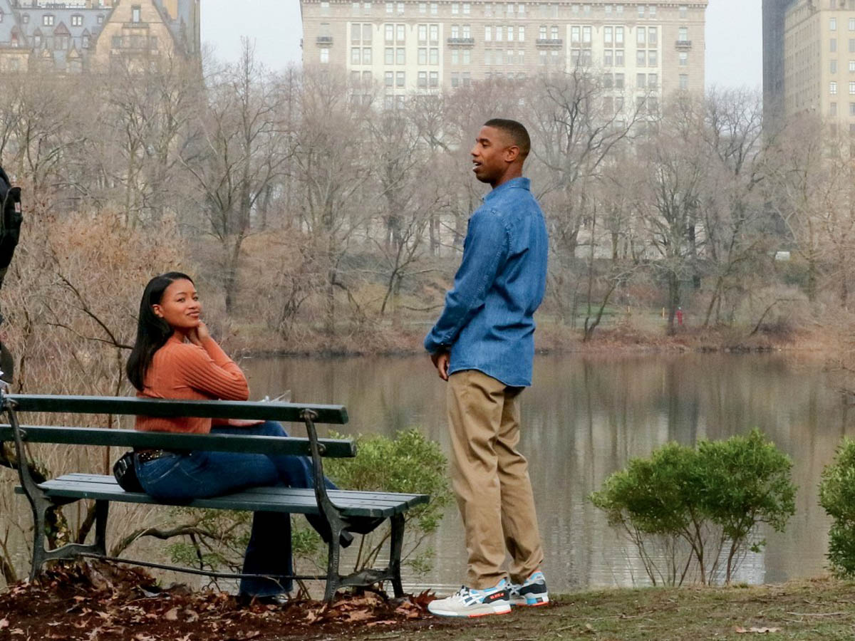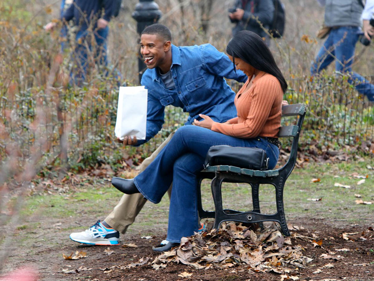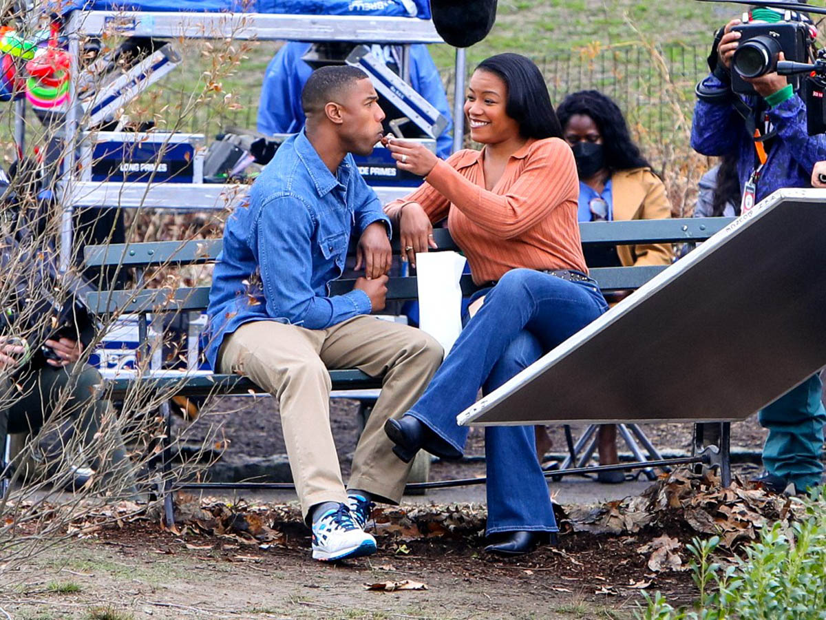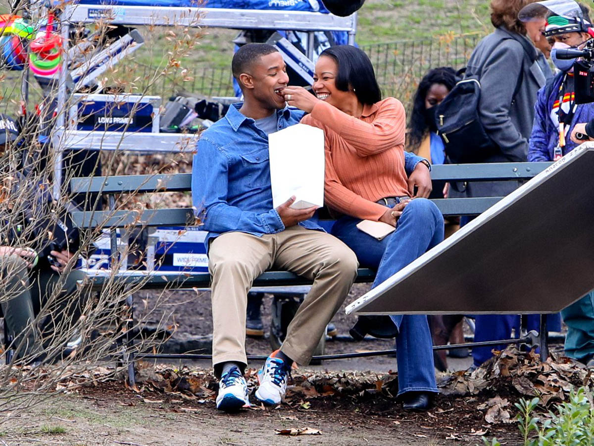 Here are Michael B Jordan and Chanté Adams today in Central Park working on the film Journal for Jordan, directed by Denzel Washington based on the memoir by Dana Canedy about her relationship with US Army First Sergeant Charles Monroe King and the journals he left for their son who was just seven months old when King was killed in Iraq in 2006.