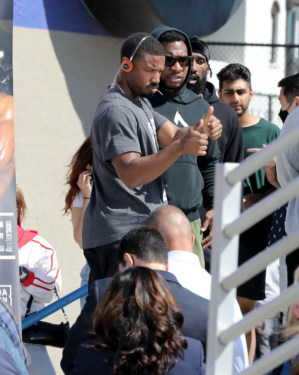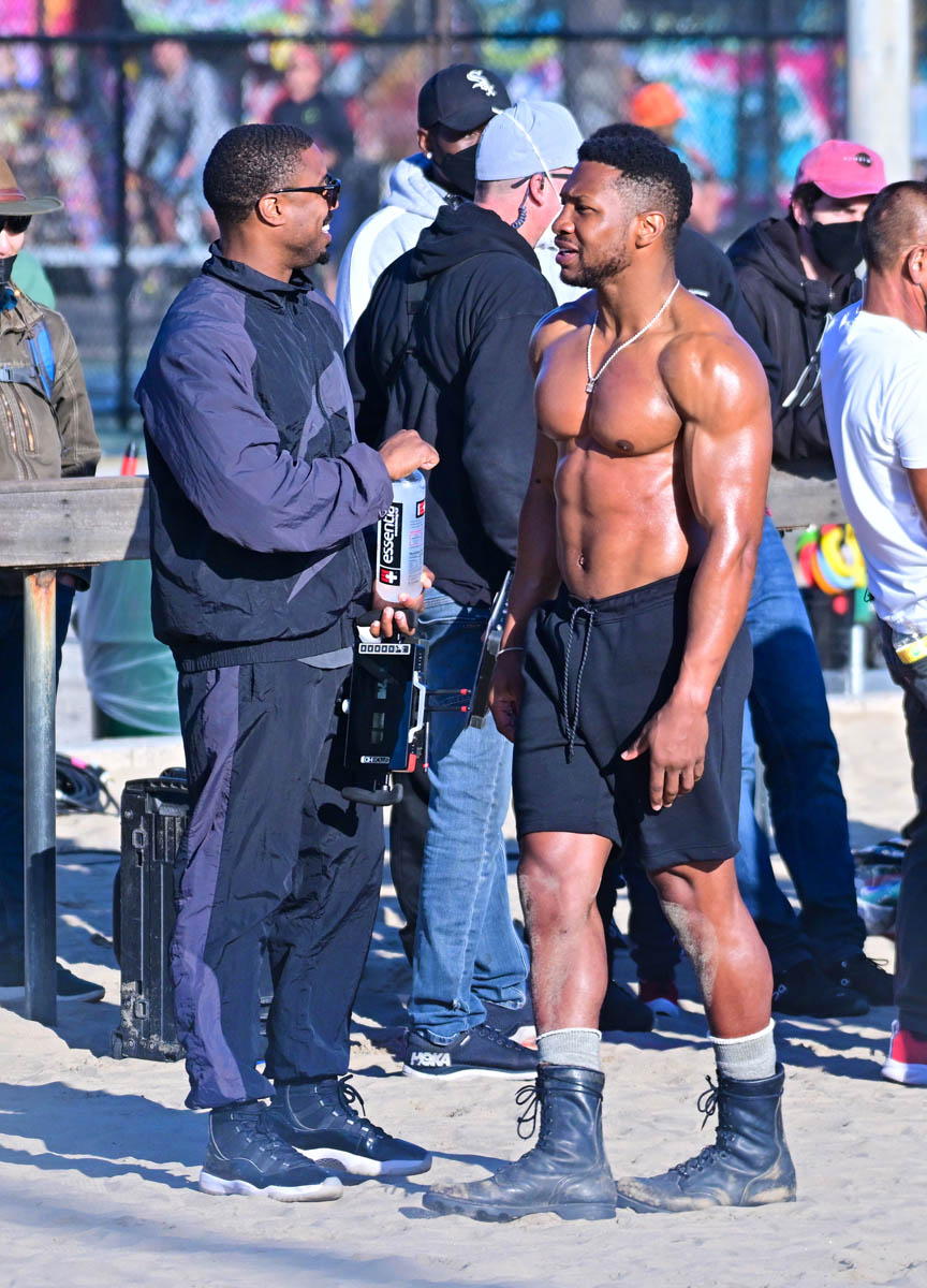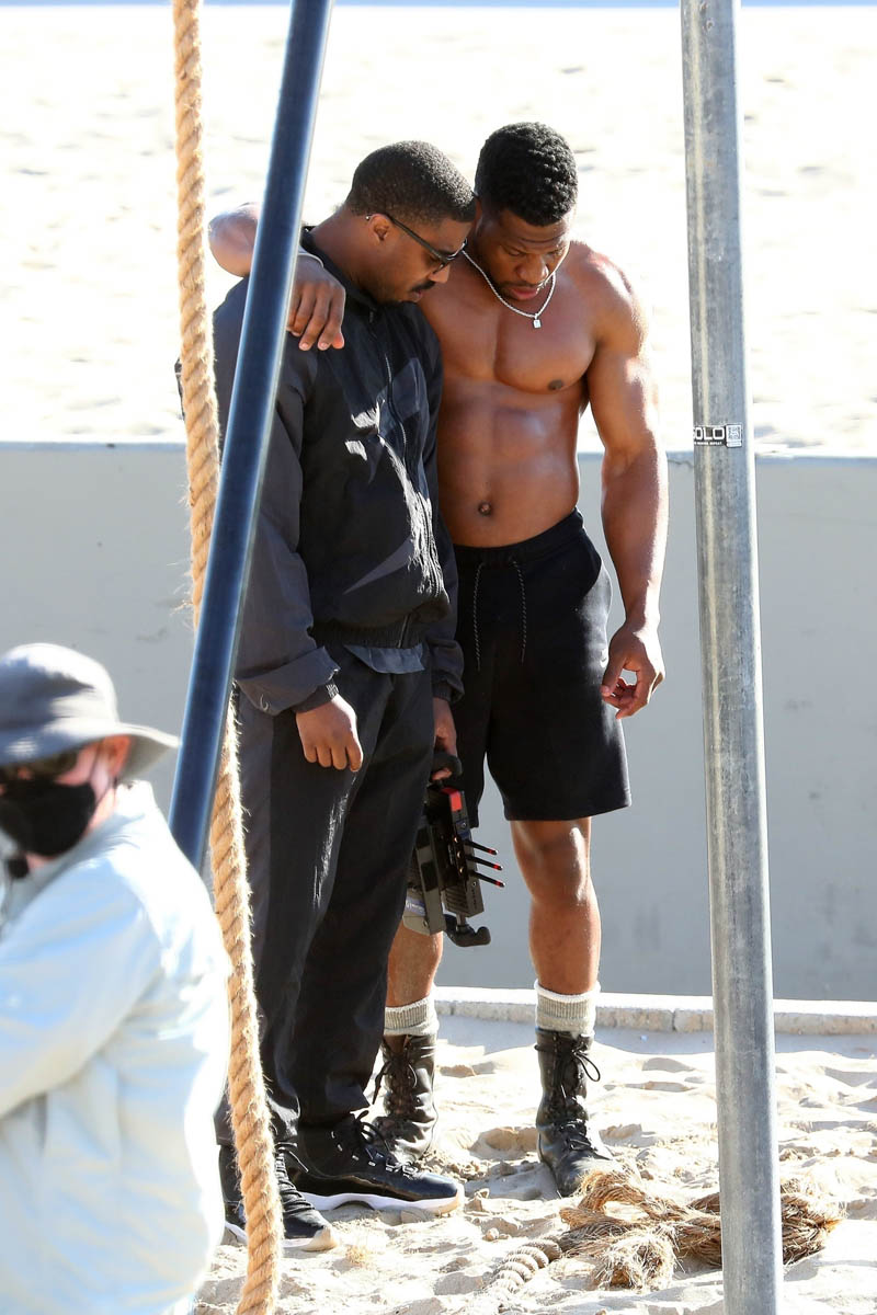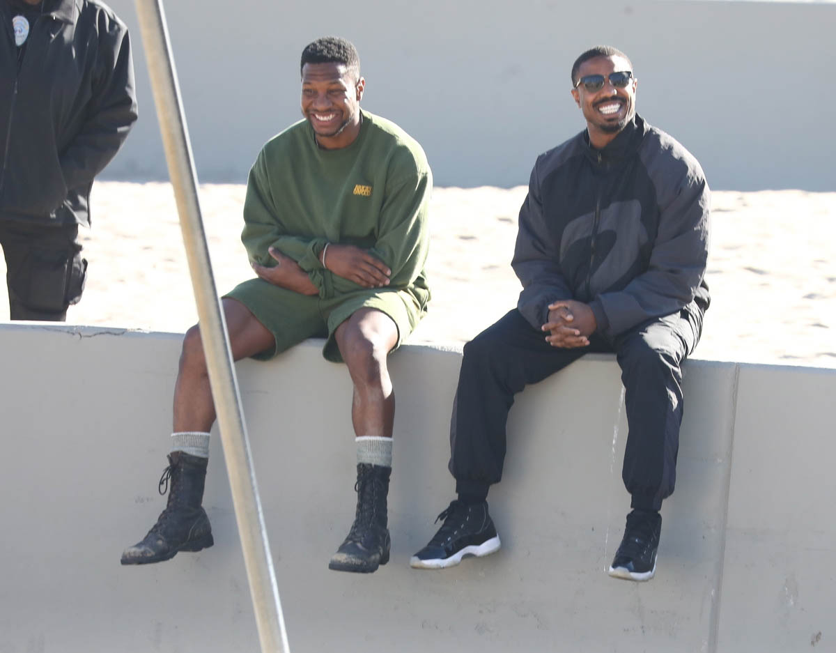 After making his red carpet premiere with Lori Harvey on Oscar night Michael B Jordan was back at work yesterday directing Creed 3. This is his feature directorial debut and it’s an ambitious project considering that, obviously, he’ll be back as Adonis in the third installment of his part in the franchise. As you can see, MBJ is working here with a ripped Jonathan Majors who over the last two years has become the major get for casting directors. As we know from Loki, he is a big part in Marvel’s next phase, and everyone now wants Jonathan Majors in everything. The fact that he’s playing Adonis’s opponent then in Creed 3 tells you that this won’t be a one-dimensional antagonist. But then again, MBJ would know about that.
