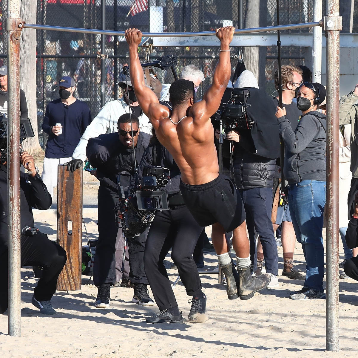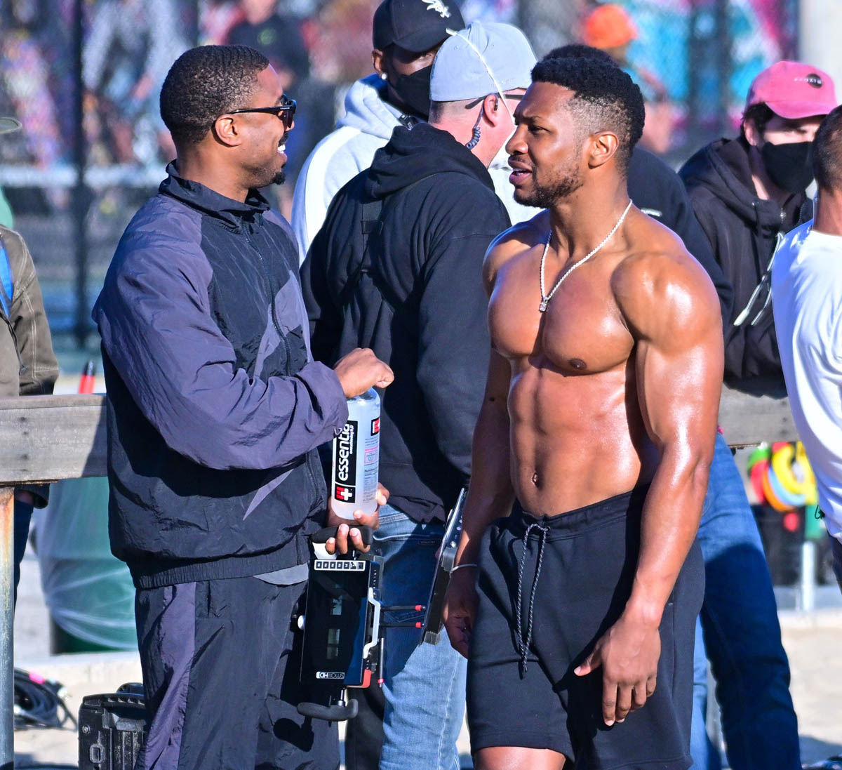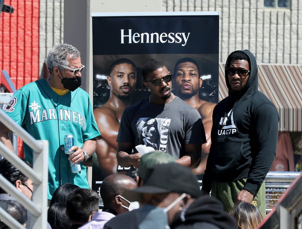 After making his red carpet premiere with Lori Harvey on Oscar night Michael B Jordan was back at work yesterday directing Creed 3. This is his feature directorial debut and it’s an ambitious project considering that, obviously, he’ll be back as Adonis in the third installment of his part in the franchise. As you can see, MBJ is working here with a ripped Jonathan Majors who over the last two years has become the major get for casting directors. As we know from Loki, he is a big part in Marvel’s next phase, and everyone now wants Jonathan Majors in everything. The fact that he’s playing Adonis’s opponent then in Creed 3 tells you that this won’t be a one-dimensional antagonist. But then again, MBJ would know about that.