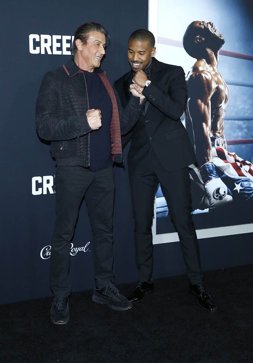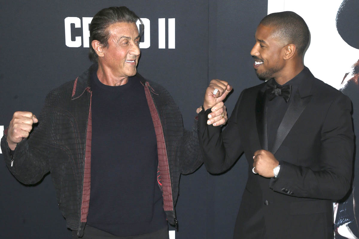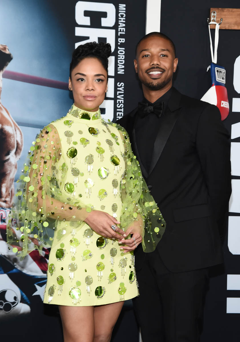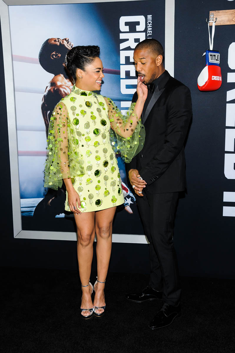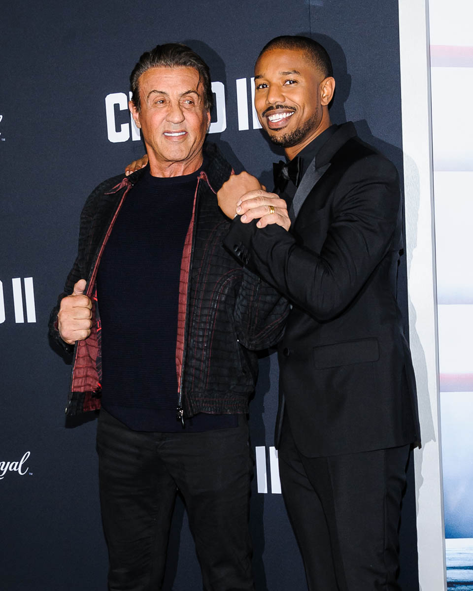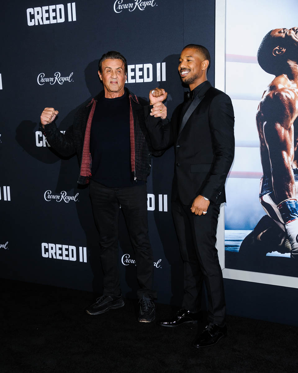 Joining MBJ and the Dragos at last night’s premiere were Tessa Thompson, looking delightfully radiant in green Prada (Sasha, find me a knockoff of this dress!), director and surprise snack Steven Caple Jr., and Rocky Balboa himself, Sylvester Stallone. My favourite pics from the carpet are of MBJ and Sly squaring off for the camera with their fists up. How ADORABLE are they? I’m going to cry the first time Adonis calls Rocky “Unc” in Creed II, aren’t I? Apologies in advance to the other people in my theatre for my inevitable hysterics.