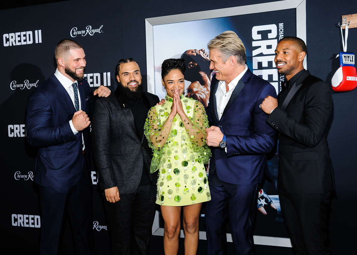 The premiere went down in New York City last night. The entire cast was there, including OG Ivan Drago, Dolph Lundgren, and Florian Muteanu, who plays Drago’s son Viktor. I hate them both on principle. As we know from the trailers, the big face-off of this film will be between Adonis Creed and Viktor Drago. Hollywood Donny needs to avenge the death of his father and my dog’s namesake, Apollo Creed. I’m excited to watch my man claim victory over the Dragos this weekend. Can you believe it’s already next weekend? Like Sarah, I feel like this premiere came FAST even though it’s had a very regular press schedule. Where the eff did this year go? I’m not complaining. I can barely wait another day to see this movie. So far, I only have one screening of Creed II planned, but knowing myself, I’m going to see it a stupid amount of times in theatres.