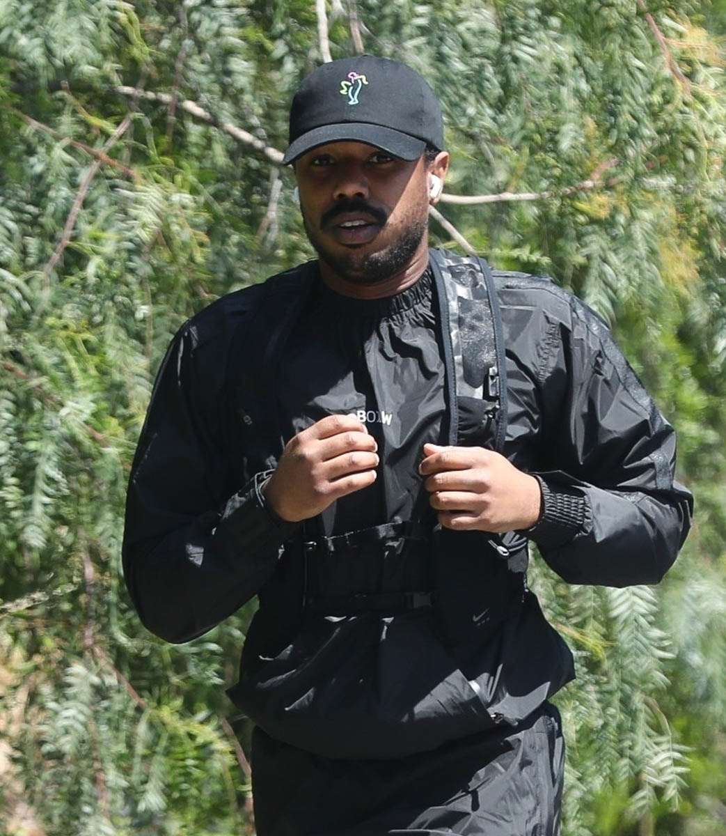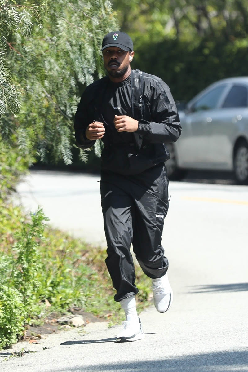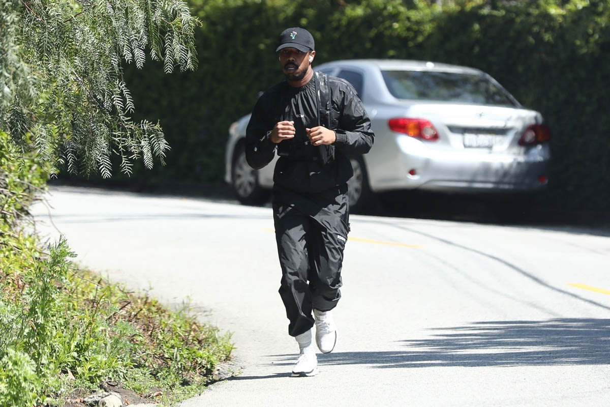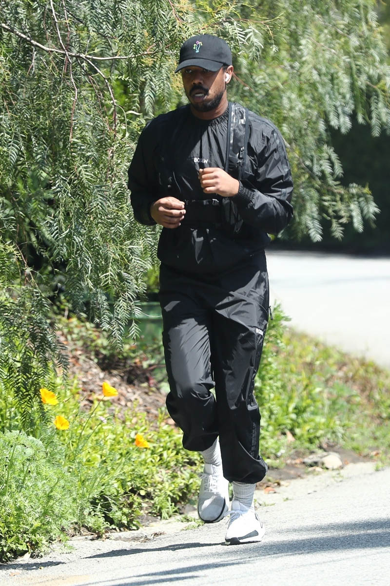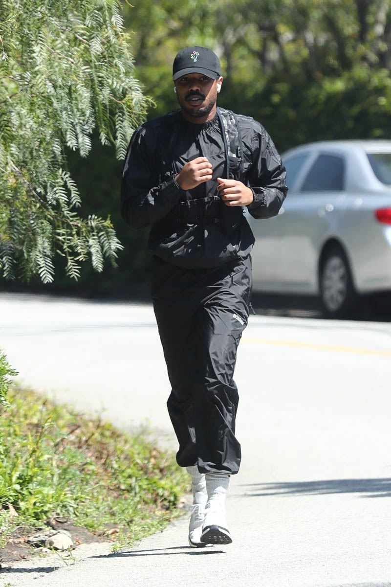 Michael B Jordan went for a run yesterday morning in LA. A few years ago, MBJ bought his parents a house and lived there with them, at least until last year, when he said that he was planning on moving out on his own soon. Not sure if that happened but I would imagine, during lockdown, that he might be with his parents at their home so that they could all be together? I feel like even before the pandemic, that would be a show: a big movie star who still shares a house with his parents. Right?