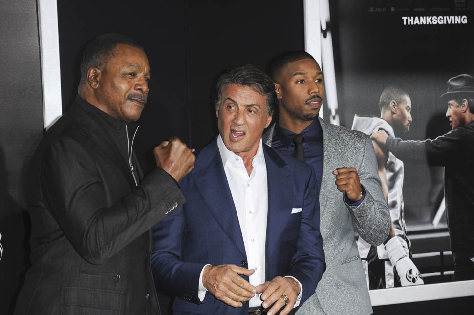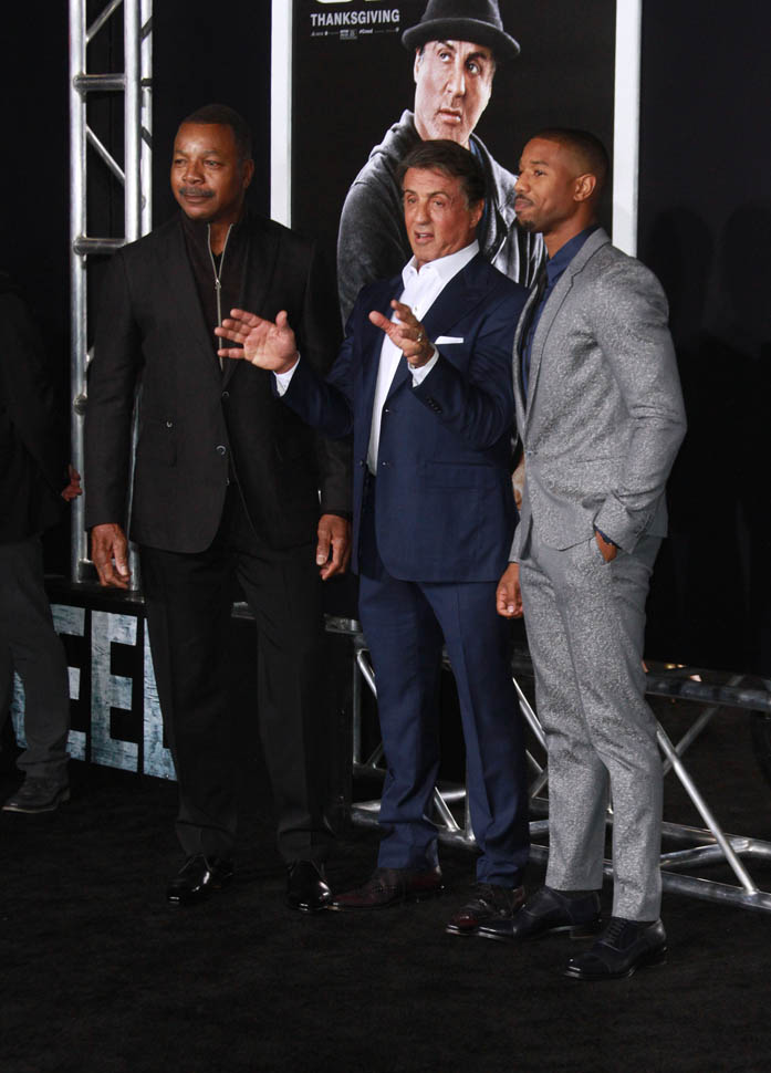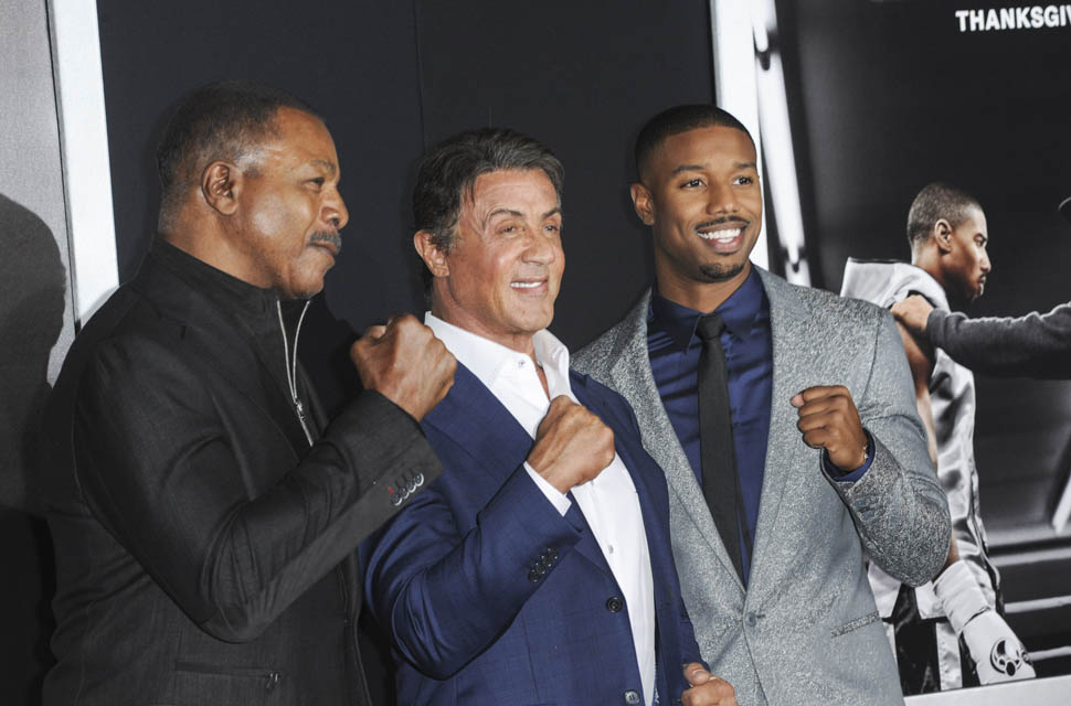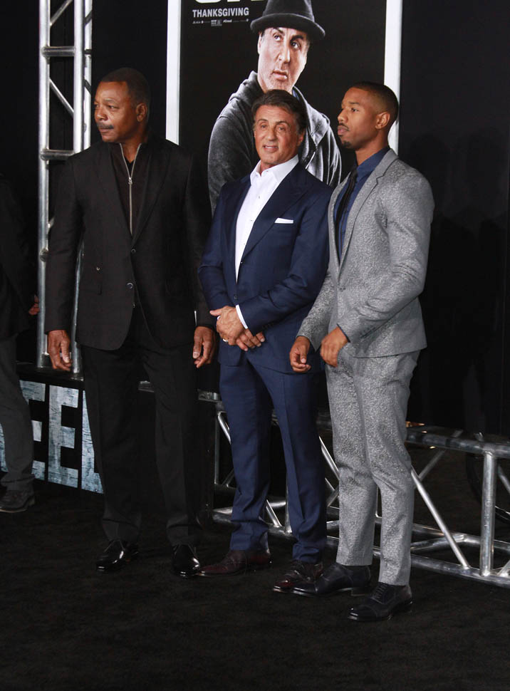 The cast of Creed was at the premiere last night in Hollywood. Carl Weathers has barely aged.