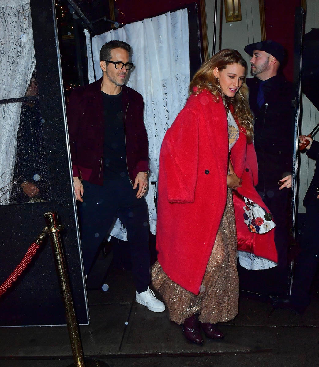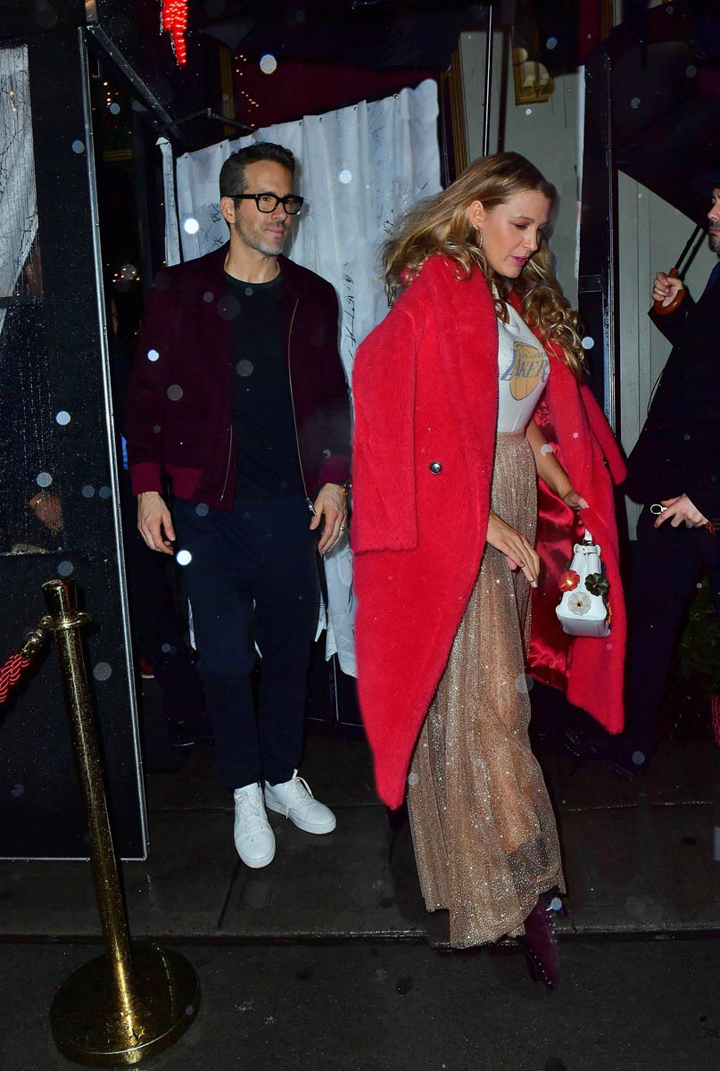 Attached - Ryan Reynolds leaving Taylor Swift's birthday party with Blake Lively on the weekend in New York, and at the 6 Underground premiere in New York last week.