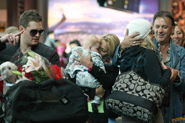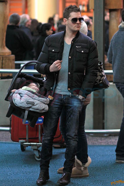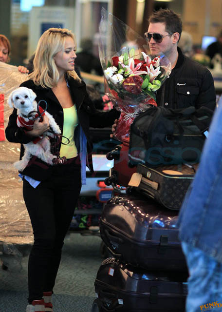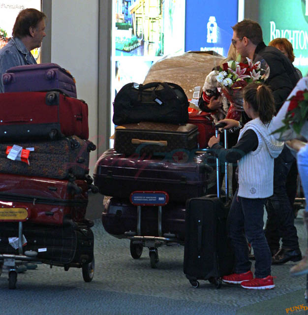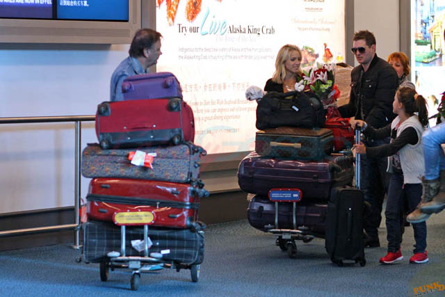 Michael Buble’s wife Luisana Lopilato arrived in Vancouver from Argentina yesterday with her family. Michael Buble and his family were at the airport to pick them all up. It’s becoming an annual tradition. Buble brings flowers, there’s a lot of hugging, and they all get into a shuttle van and go home. A shuttle van! That’s how many people we’re talking about. Look at all that luggage! I dunno, maybe it’s the time of year. This is warm and fuzzy, right? Until Boxing Day. When you can’t wait to get rid of them all.