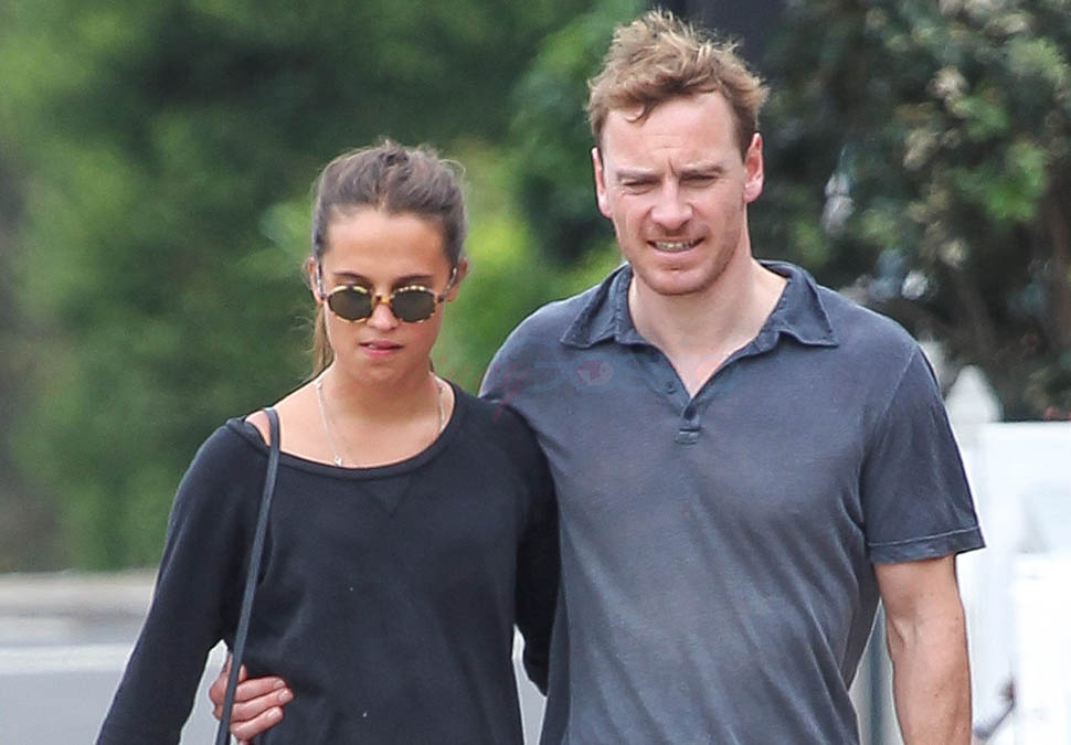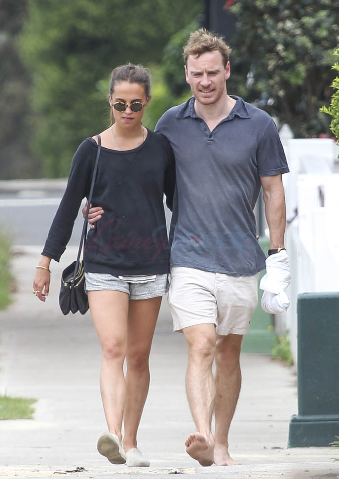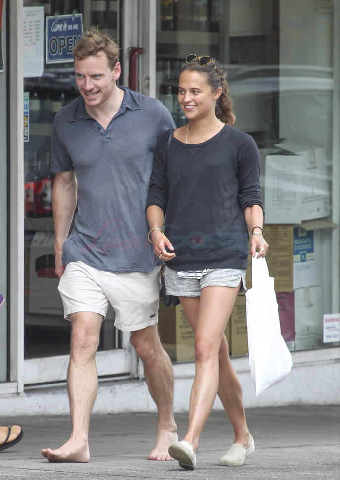 When I wrote about Michael Fassbender and Alicia Vikandr’s side-by-side lunch the other day, I asked you about side-by-side eating and whether or not it means something. All of you noted that you don’t side-by-side with someone at a table unless you’re side-by-siding them in bed. Fassbender and Vikander seem to have confirmed this for us. They walked to the store yesterday in Australia. When they left, they had their arms around each other. In the previous sets of pap shots we saw, there were nothing definitive to suggest that they’re dating. I’d say this answers the question, non?