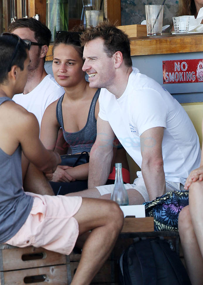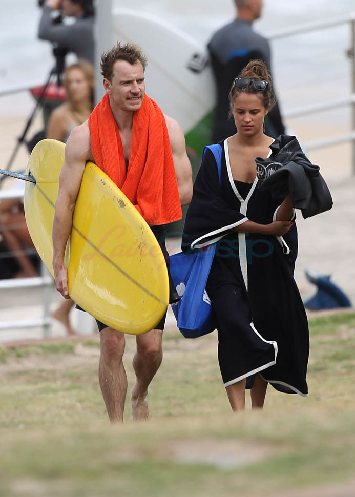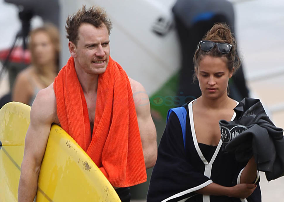 Michael Fassbender surfs with Alicia Vikander