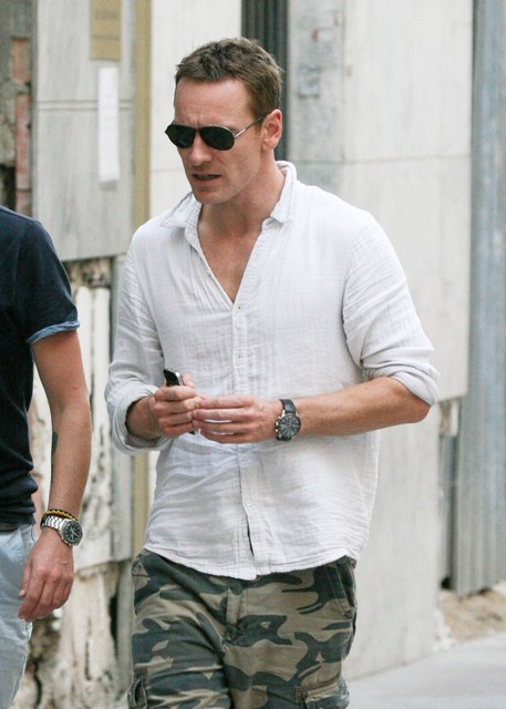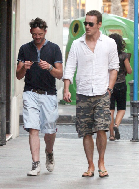 Michael Fassbender apparently had the day off from shooting The Counselor in Alicante, Spain today. He was photographed out for a walk with a friend. Since many of you are still really into him, those are for you.