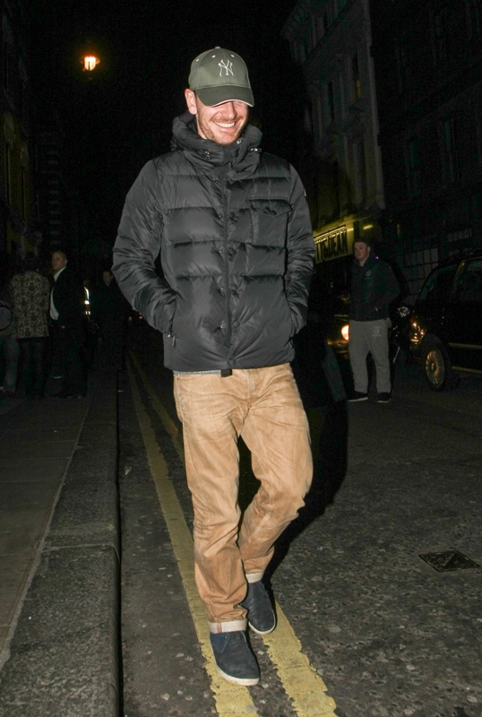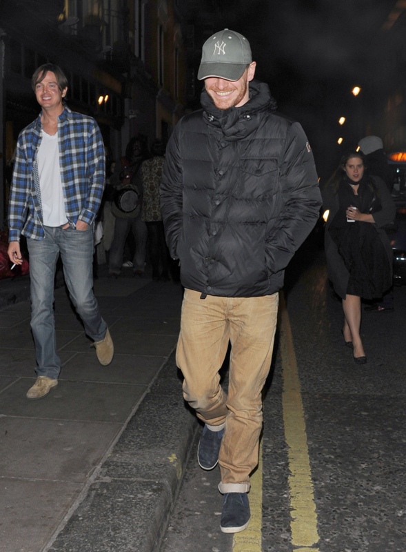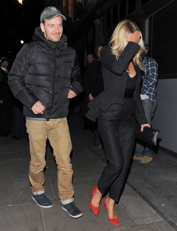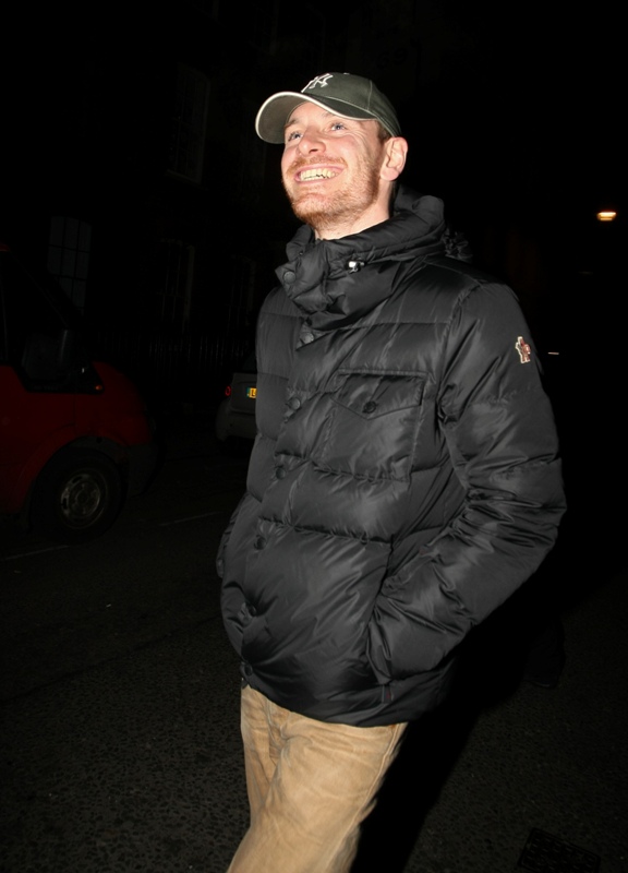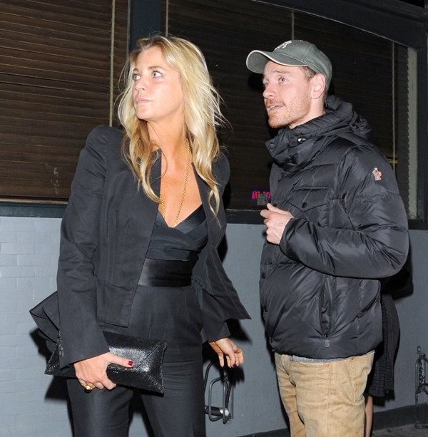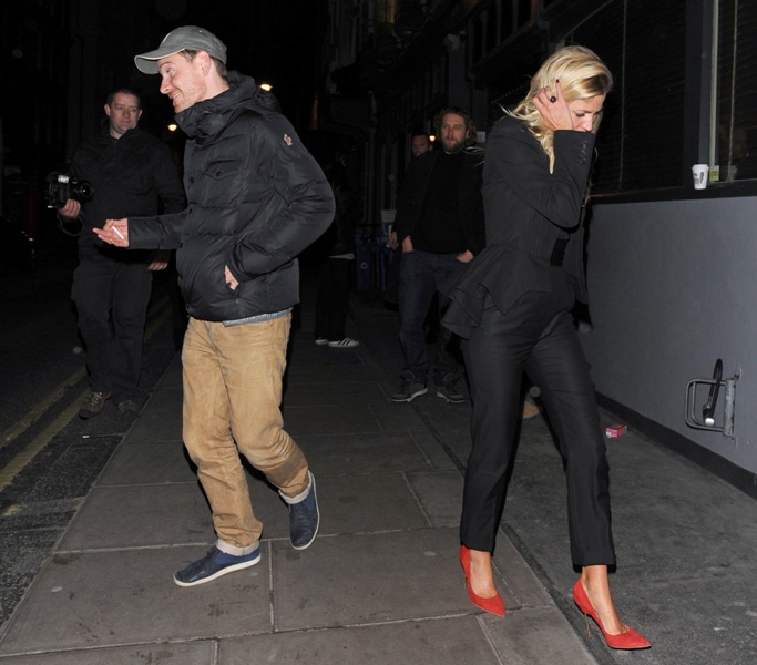 Michael Fassbender was photographed outside The Groucho Club last night with a non-famous blonde, not exactly his usual target. So... is it happening? On Photo Assumption I’ll say yes based on that sheepish look on his face that can’t be blamed entirely on drunkenness and, since we’re only photo assuming anyway, I’ll add that they probably don’t know each other very well, as this kind of awkwardness implies a lack of familiarity.