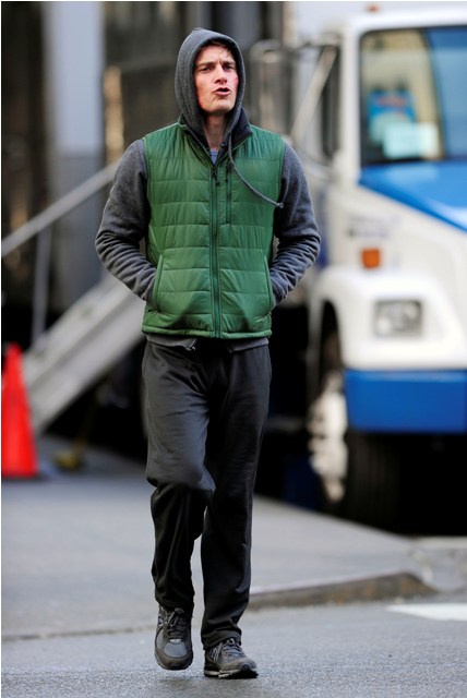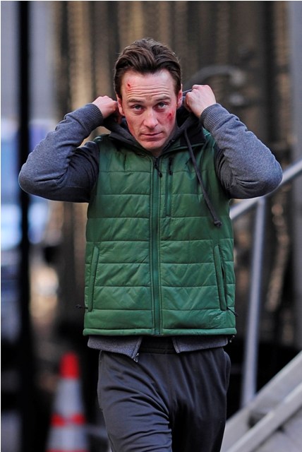Here’s Michael Fassbender in New York the other day working on a new movie called Shame with Carey Mulligan who’s been made up to look like sh-t. Maybe she should try a comedy soon? I mean, I think we all know now she can do drama.