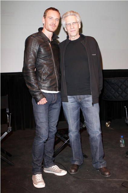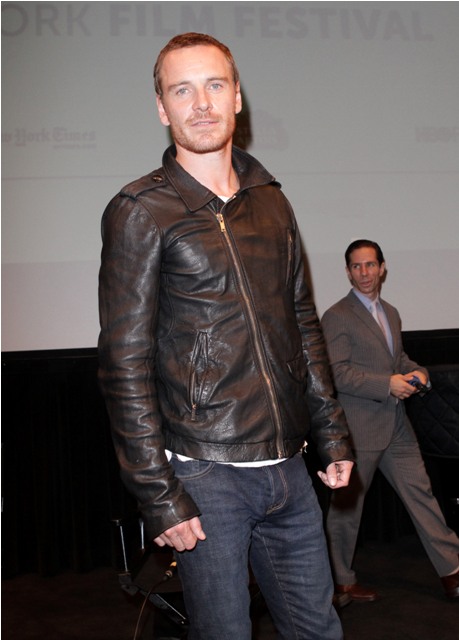 Michael Fassbender was in New York yesterday with David Cronenberg to promote A Dangerous Method. Meanwhile his on/off girlfriend Zoe Kravitz was photographed, also in New York, with Penn Badgley, holding hands and kissing. I didn't feel like spending money on those photos. Sorry. You can seem there here.