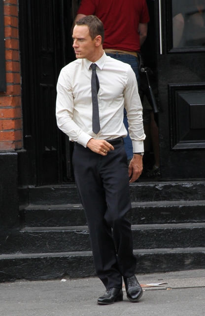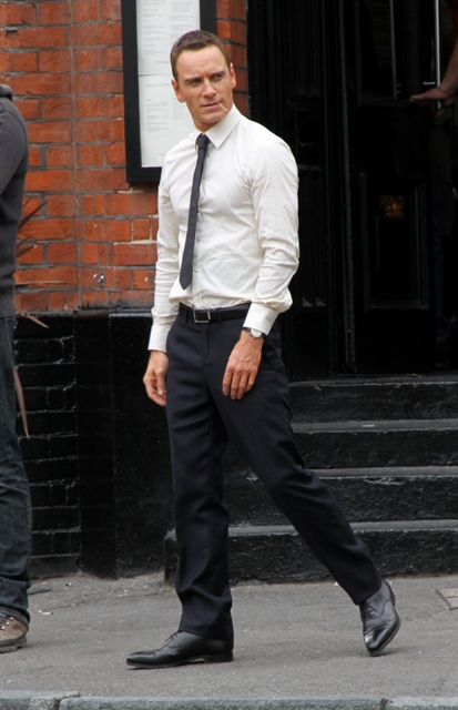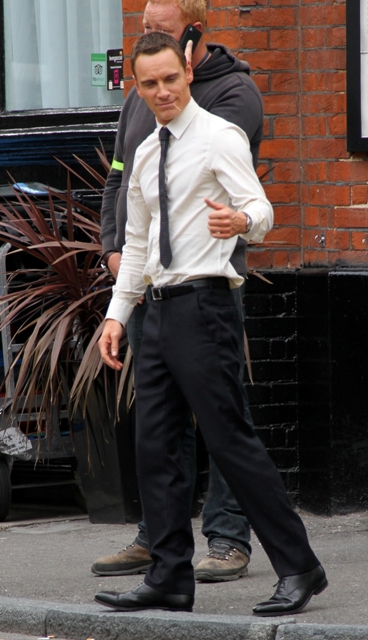 Attached - Fassbender working on The Counselor in London today.