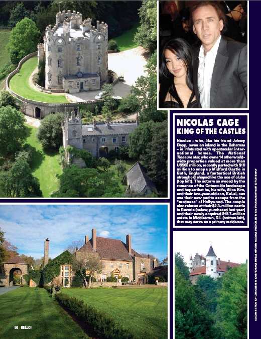 Also included in this issue of Hello Canada – Celebrity Indulgences. Johnny Depp’s island, Celine’s fortress…and no wonder Nicolas Cage keeps making the same sh*tty movies over and over again: turns out he has to pay for his little Castle Habit.