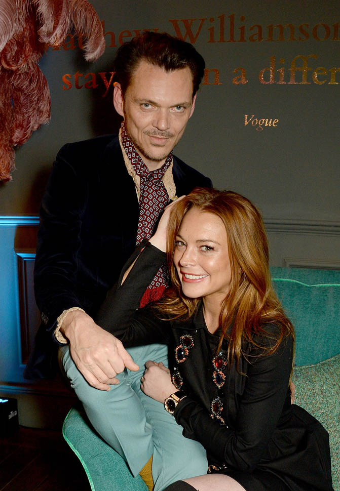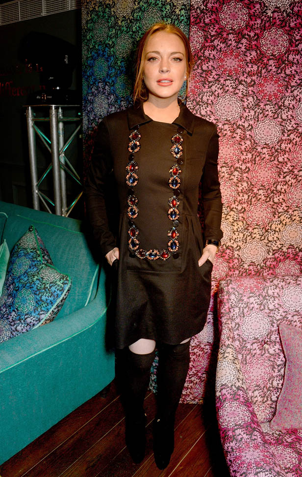 Attached - Lindsay Lohan at the Matthew Williamson furniture collection launch at Harrods last night and file photos of Lindsay with Egor in 2015.