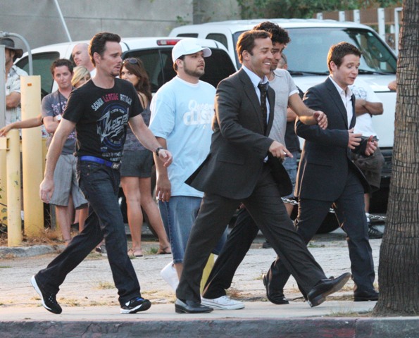 Photos attached of the boys on set – in New York earlier this week, Adrian with his grandma, and the Piv out and about in LA.