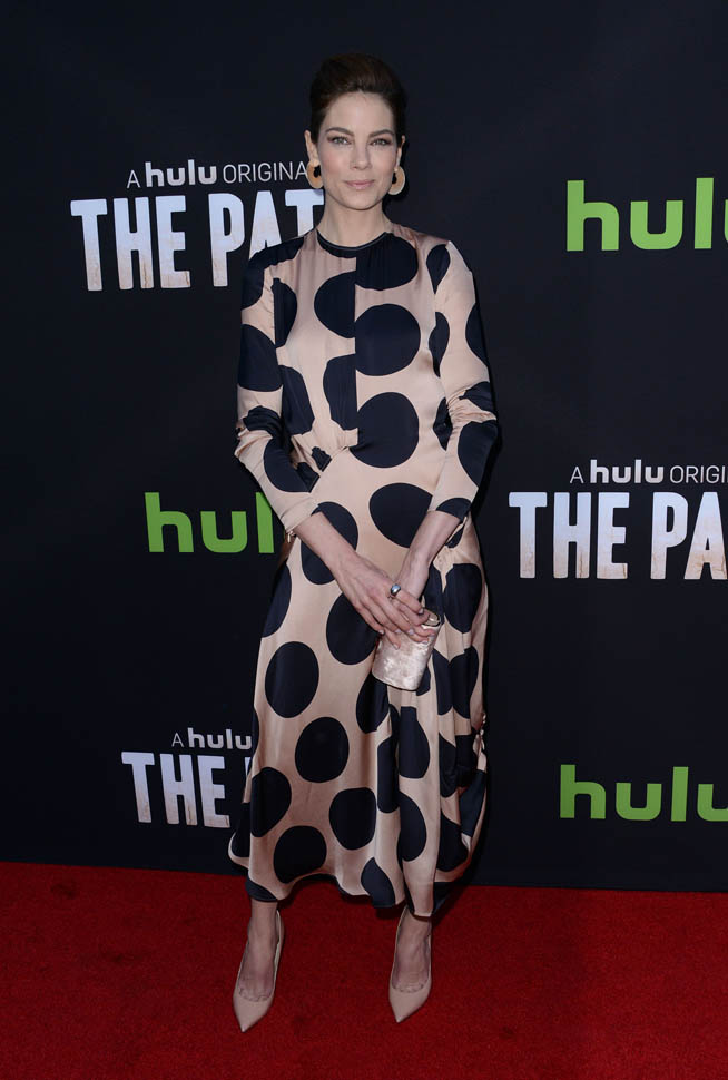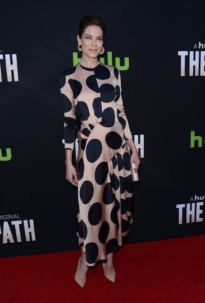 What a well-designed dress. Note the ruching at the hip on one side and on the upper thigh on the other. There’s some ruching on one side of the hem too. It all adds up to a great fit and a really lovely fall off the body. She changed stylists, I think. Before she worked with Petra Flannery who styles Emma Stone and Zoe Saldana. And now she’s with Karla Welch who also styles Sarah Paulson, Justin Bieber, and Olivia Wilde. You can see the shift, right?