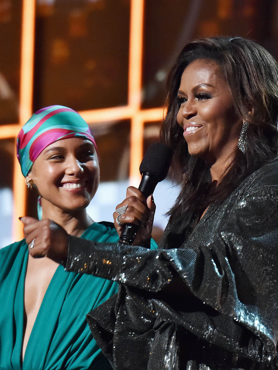 Michelle’s appearance was a surprise. She was there to express with the other four women (including Alicia Keys) on that stage that music is a lifeline and a vessel to tell stories. Michelle’s full story, in her own words, was released late last year. We know that she and Barack are knee-deep in creating new ways to tell their stories through Hollywood. This is an industry that they are going to be a part of for a long time. I would have guessed that the Oscars would be the show they turned up for but staying present in these spaces is a smart move for the Obamas. And it’s a GREAT look for the Grammys to have Michelle and four other powerhouse women stand on their stage and validate their existence. We know that last year the Grammys were male-dominated. When Recording Academy president Neil Portnow was asked about the clear disrespect for women the Grammys displayed, he stepped in it even further by basically blaming female artists for not “step[ping] up.” Last night felt like an atonement for Neil’s dumbass comments.