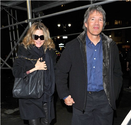Michelle Pfeiffer and David E Kelley were photographed in New York yesterday. They hit up an art gallery with their children, Claudia Rose and John, and then they all went to the Lady Gaga show at Madison Square Garden. Can you imagine going with your parents to see Lady Gaga? My Squawking Chicken would lose her f-cking mind. Maybe I should take her and YouTube the whole thing.