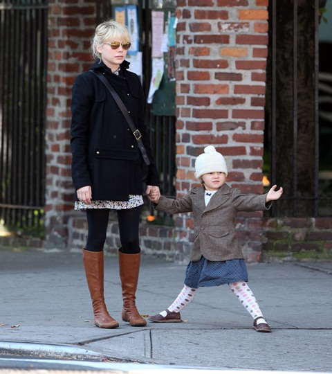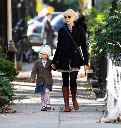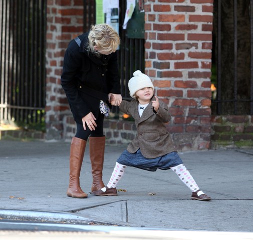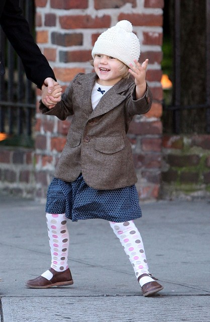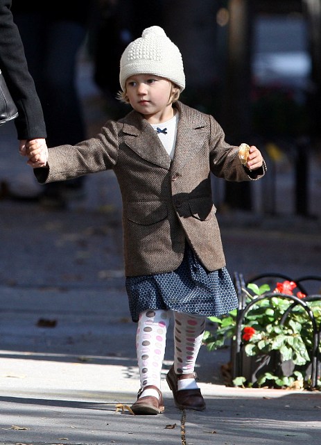 This is a very smartly dressed Matilda Ledger in Brooklyn the other day going for a walk to the corner café for a coffee (mom) and a bagel (Matilda).