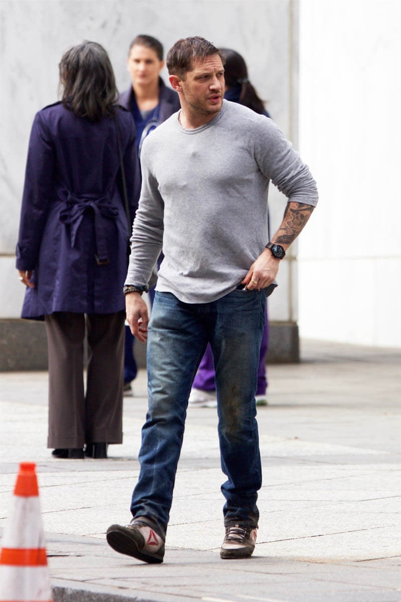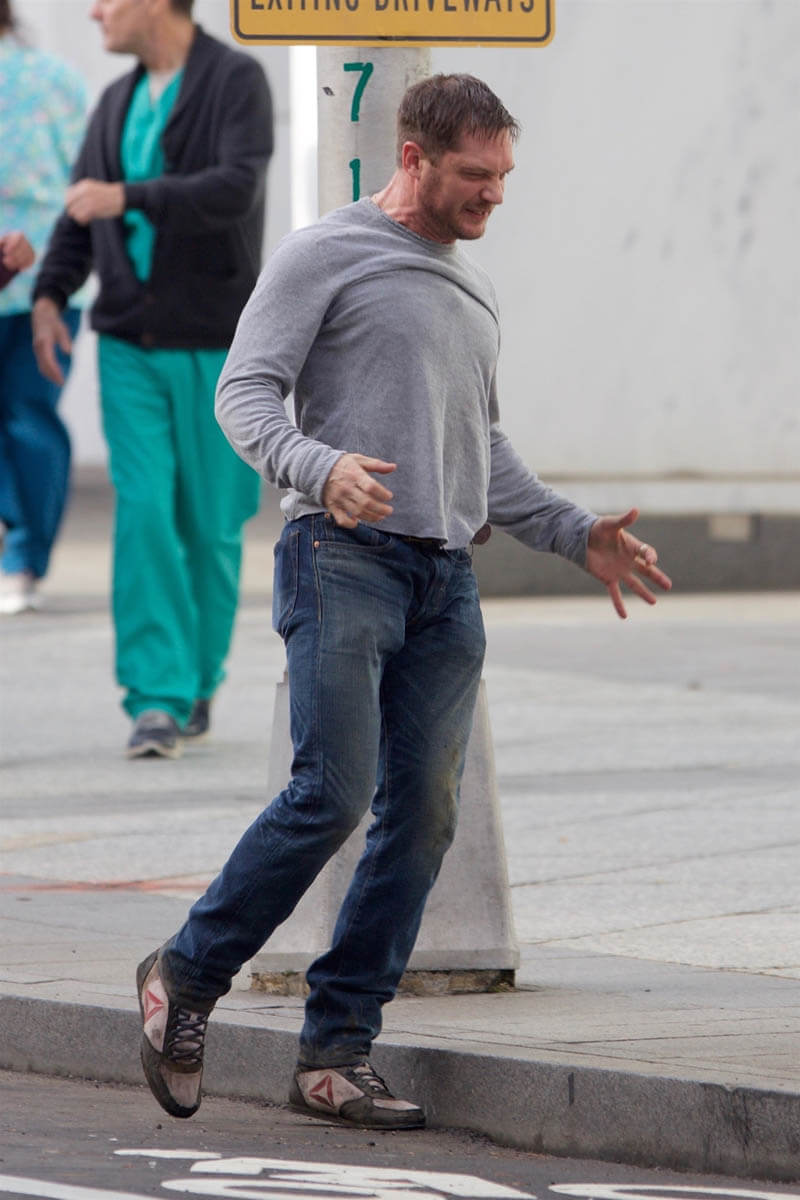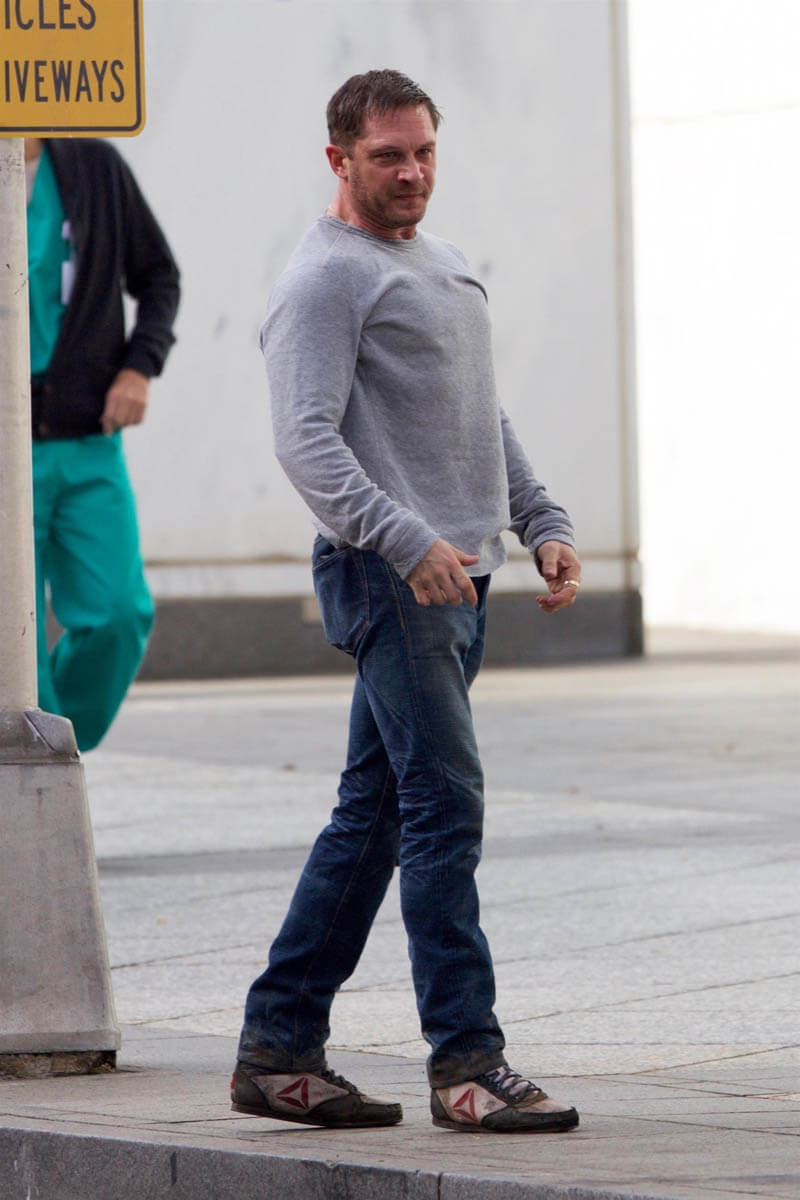 Tom Hardy has been in Atlanta the last few months working on Venom. Venom is a Spider-Man villain. Apparently he starts off as Eddie Brock and some sh-t happens to him – as it does in these stories – and he becomes a bad guy. I’m not a comic book nerd so please don’t ask me to tell you more than that. All you need to know for our purposes is that this is an entire movie based on a bad guy and if the bad guy is the protagonist, you know he’s more than just a dude who wants to swallow the whole world. Obviously there will be LAYERS. And obviously, since Tom Hardy is involved, the character will be COMPLICATED. And obviously, Tom Hardy also belongs to the Leonardo DiCaprio acting school of hardness. Or, maybe he doesn’t. Leo doesn’t do big budget superhero style movies because he’s too important for that.