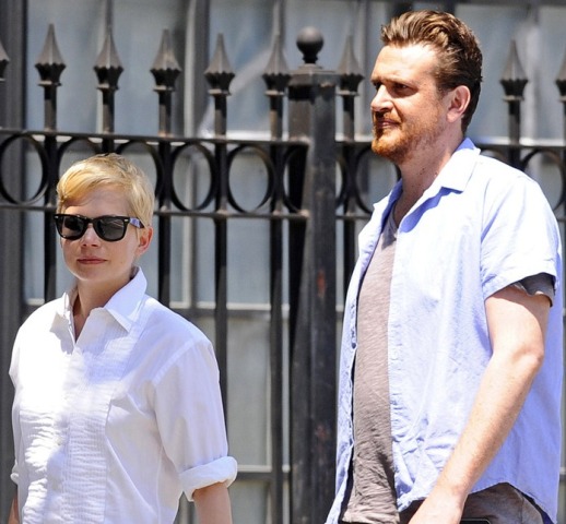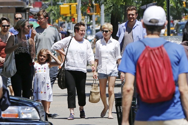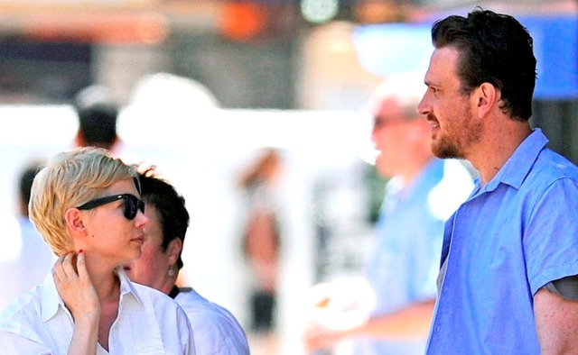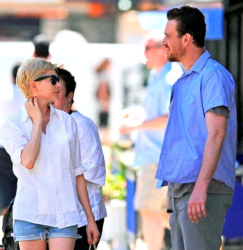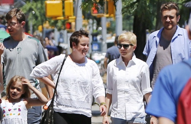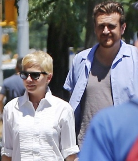 Michelle Williams and Jason Segal went for a walk in New York on Saturday with Matilda and the nanny. Look at him. He’s wearing his hair shorter. He’s hot. Just like she glowed the other night from the inside - click here for a refresher - his happiness is making him prettier too. Does it have a better chance of lasting if we all want it to together? Because I feel like everyone is pulling for these two.