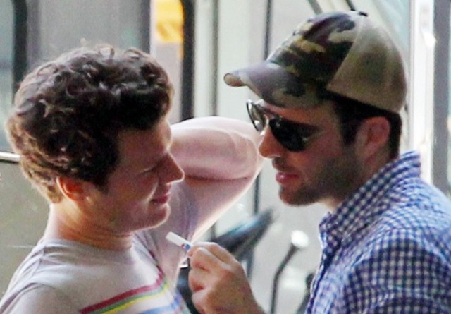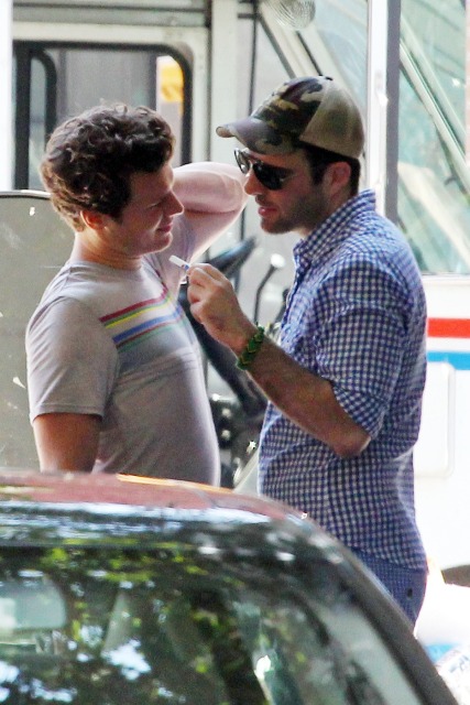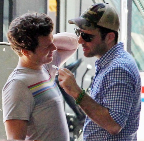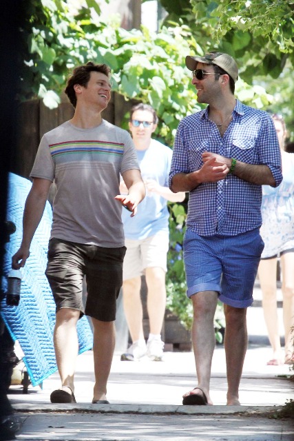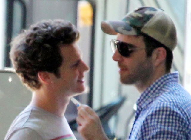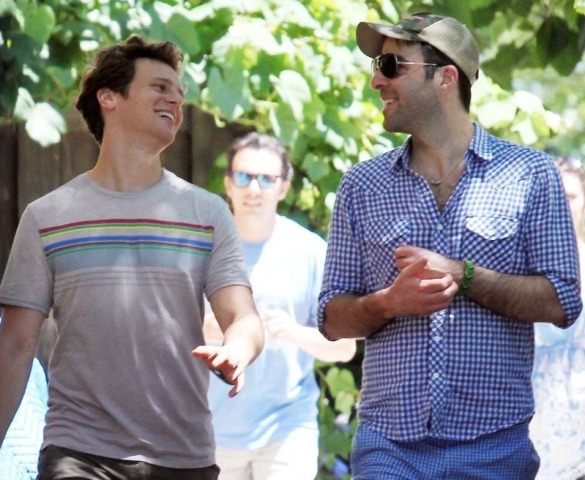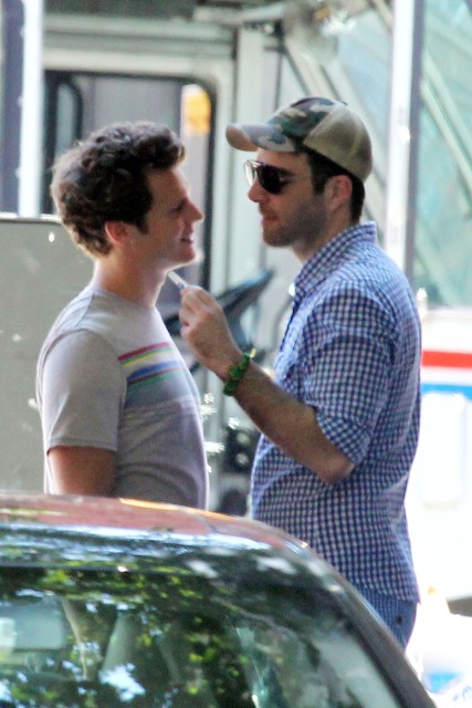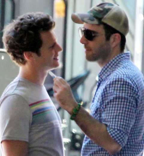 On the same afternoon, also in New York, Zachary Quinto and Jonathan Groff were enjoying the weather outside too. Super sexy, right? Like you want them to keep leaning, closer and closer and closer...
