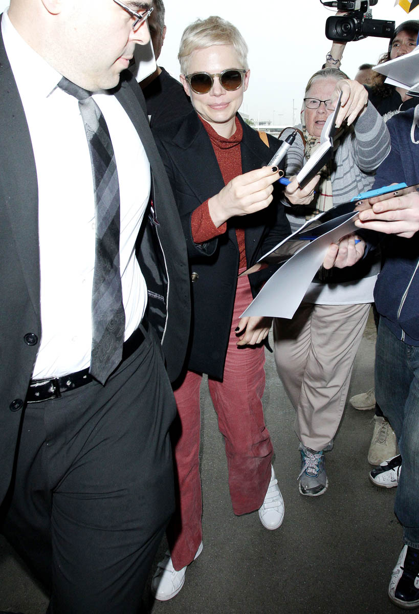 Here's Michelle at the 2018 Bafta Tea party and at LAX yesterday.