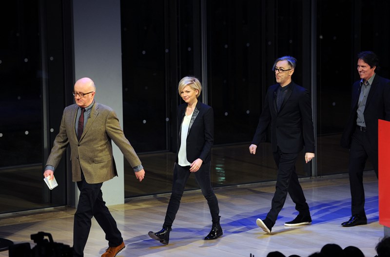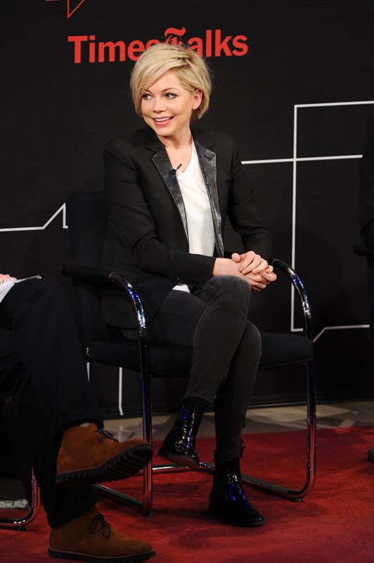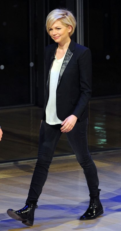 Michelle Williams was in New York yesterday with Alan Cumming and Rob Marshall to discuss the upcoming Broadway production of Cabaret. It’ll be her Broadway debut and, of course, she’s playing Sally Bowles. Sally is supposed to be 18 or 19. Michelle is 33. Not that 33 is old, God it’s not old at all. But there’s something about Michelle Williams this is ageless. And I don’t mean ageless in the sense that she never ages but I do mean ageless in that I think she can swing younger and older. I’m willing to believe her at any age. If she’s playing 18, I believe it. If she’s playing 40+, I believe it too. She’s that good.