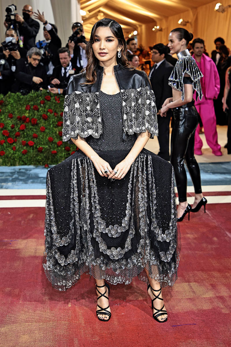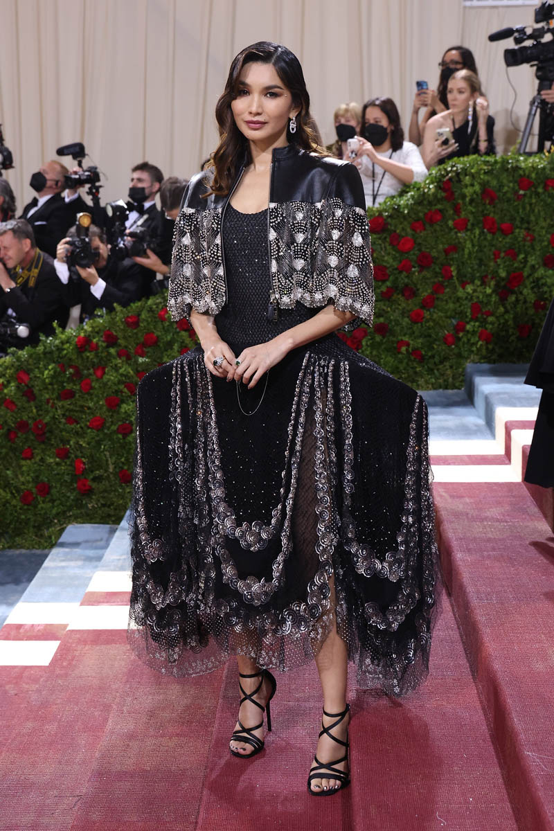 But let’s start with the black. Gemma Chan and Ho-yeon Jung both repped Louis Vuitton last night at the Met Gala and between the two looks, I prefer Gemma’s for its originality – a chandelier or lamp shade, more flapper than gilded but lovely nonetheless. And she’s always reliable on the red carpet, it’s just… not that exciting? I have gagged way harder over Gemma Chan at the Met Gala before.