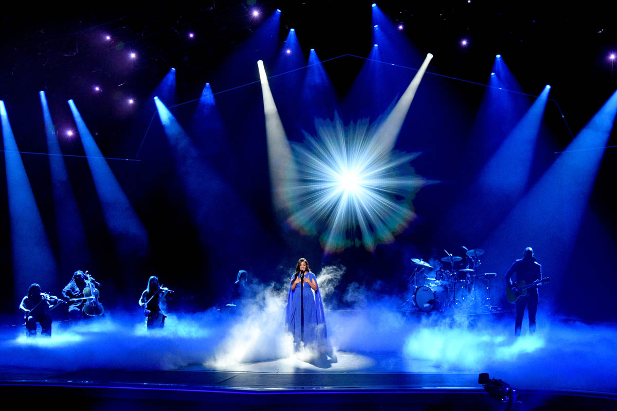 Along with the wardrobe, Mickey also had the wind machine going. Wind and more for her performance, as there was a choir too: