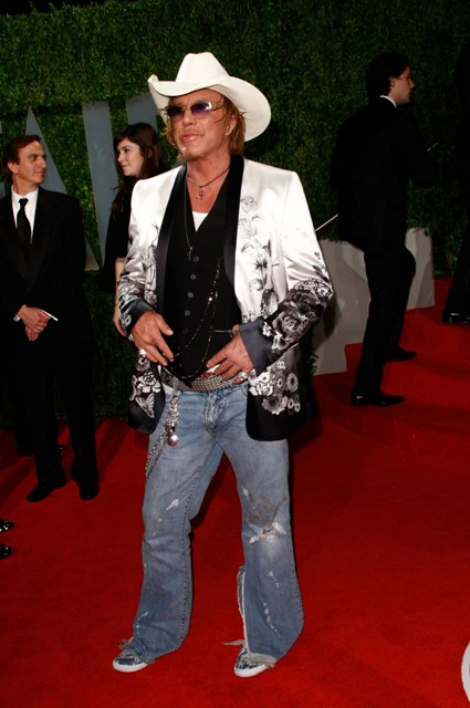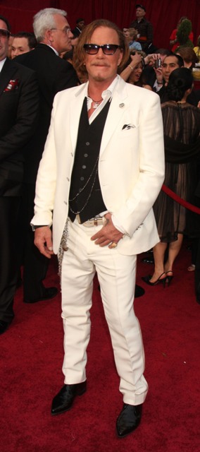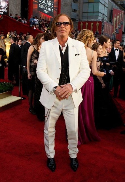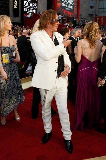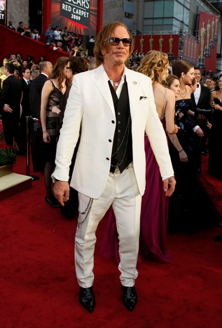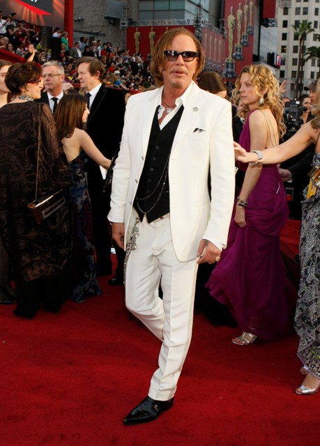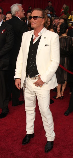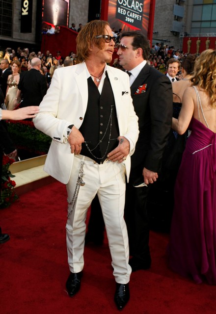 Check out Mickey in white at the Oscars and then at the Vanity Fair party where he changed into something more comfortable. Also attached – Mickey’s moment with the Brange.