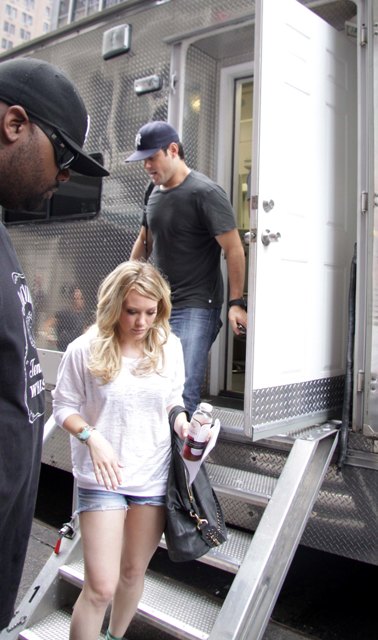 He was photographed coming out of her trailer today in New York on the set of Gossip Girl. And Scott S emailed the other day (thanks Scott, say hi to Laney and Judson!) to say that he saw them at Union Square on Saturday so it sounds like Mike’s been with her the whole time…because he has a lot of time…