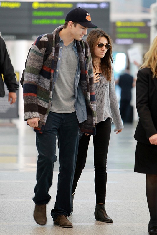 We were just talking about Katy Perry’s attraction to John Mayer’s “genius”. And now here’s Mila Kunis, arriving at LAX with Ashton Kutcher yesterday after hitting up Toronto’s Just For Laughs Festival where she performed a Family Guy reading with other members of the cast. I feel like Mila’s not unlike Katy Perry this way. Both are dating men who’ve behaved like pricks – and publicly. Both claim to see beyond the superficial, in love with an alleged brilliance that’s supposedly buried underneath. In Ashton’s case, because he’s a self-proclaimed tech mogul? OK.