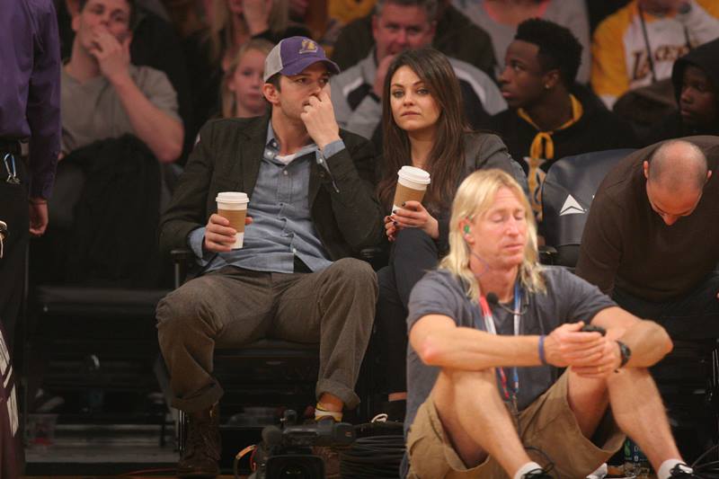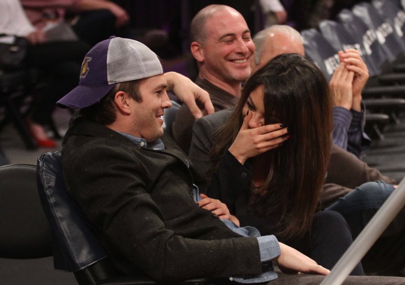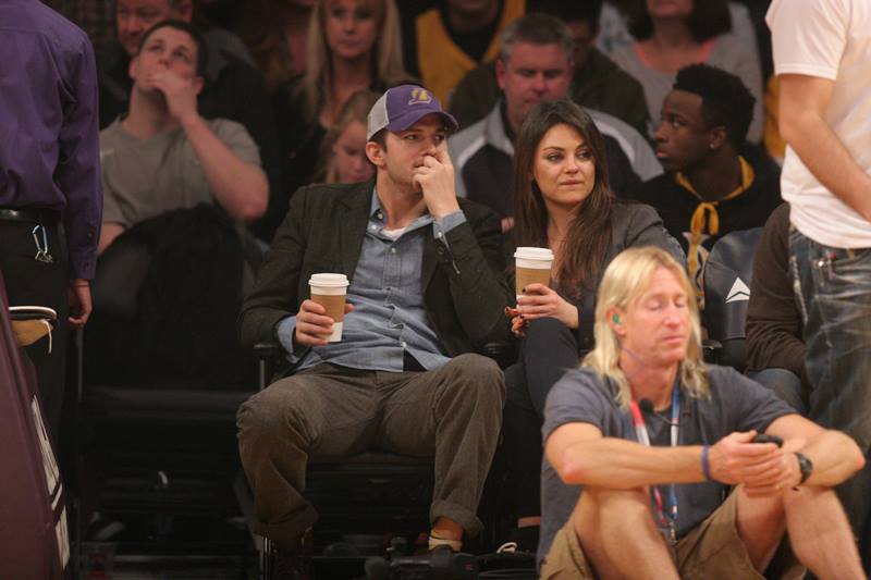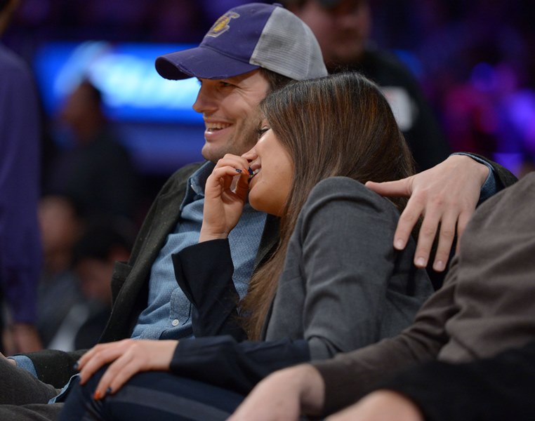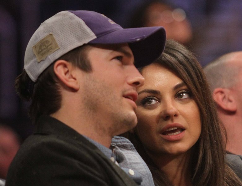 Mila Kunis and Ashton Kutcher were at the Laker game the other day. There’s a shot where she appears to be side-eyeing him. Of course she’s not side-eyeing him. They kissed for the kiss camera. And then there’s this moment.