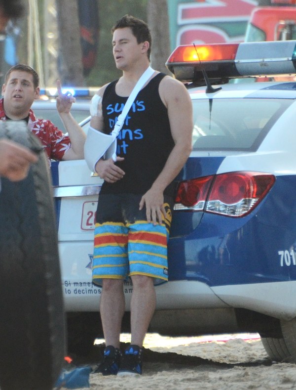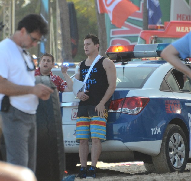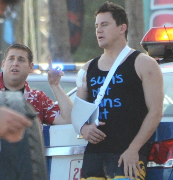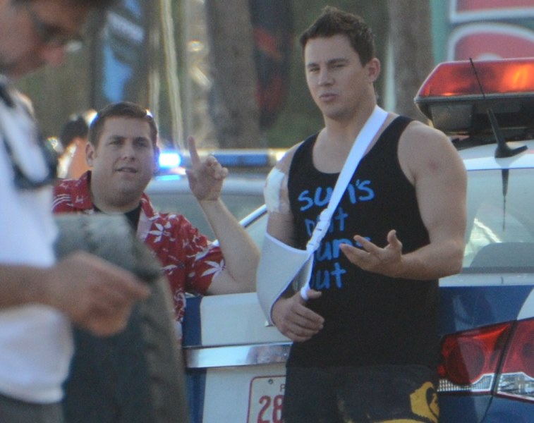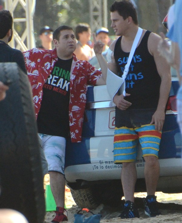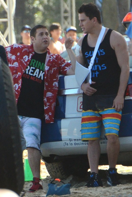 Here’s Tatum in Puerto Rico today working on 22 Jump Street with Oscar hopeful Jonah Hill. If Jonah Hill won an Oscar, would you want to be back on set with him the very next day? Channing Tatum would. That’s how nice Channing Tatum is. Better than me.