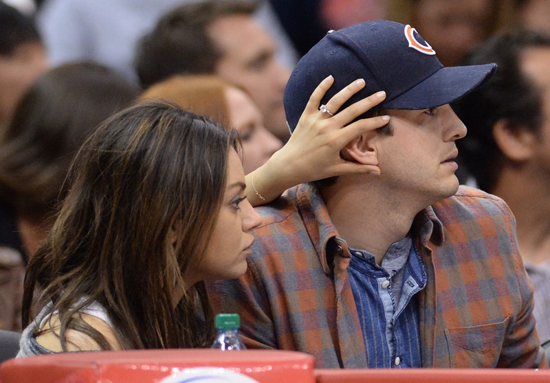 Anyway, Mila and Ashton were courtside at the Clippers game the other day. It was a tactile outing. At one point she had her hands all over his face. And they were on the kiss cam. Yeah, that’s private.