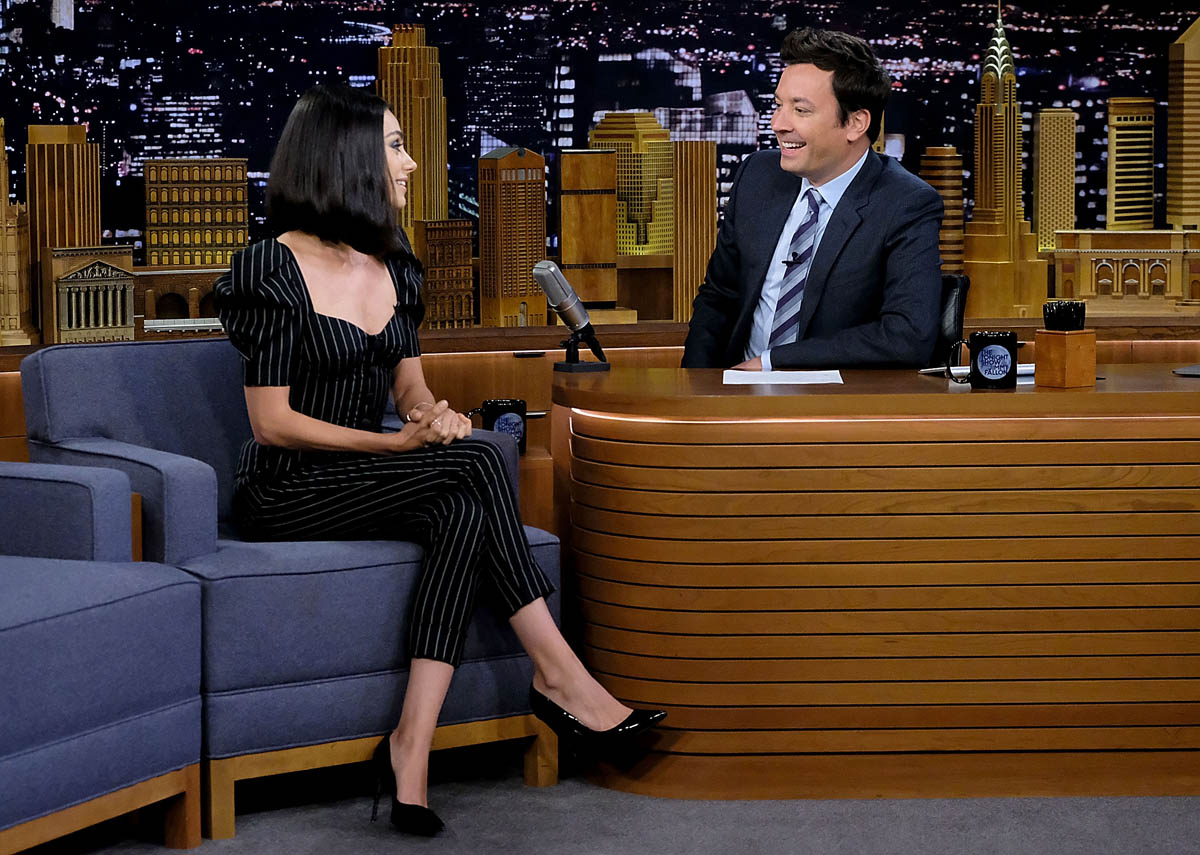 Is this a jumpsuit? It may be a two-piece. Whatever it is, it’s great on her. And a relief because I have not at all been into anything she’s worn so far on The Spy Who Dumped Me press tour. Boring, boring, boring gowns.
