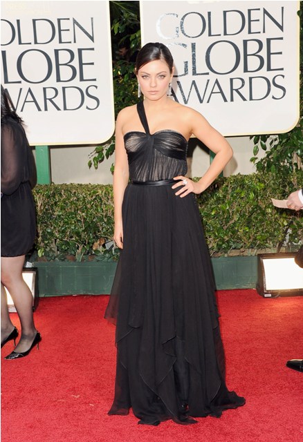 But we’ve seen this one strap before. And the waistline is almost frumpy and the material is totally unremarkable and her makeup seems half assed and what happened to bringing out those crazy, amazing eyes? How often have you seen Mila Kunis look so dull?