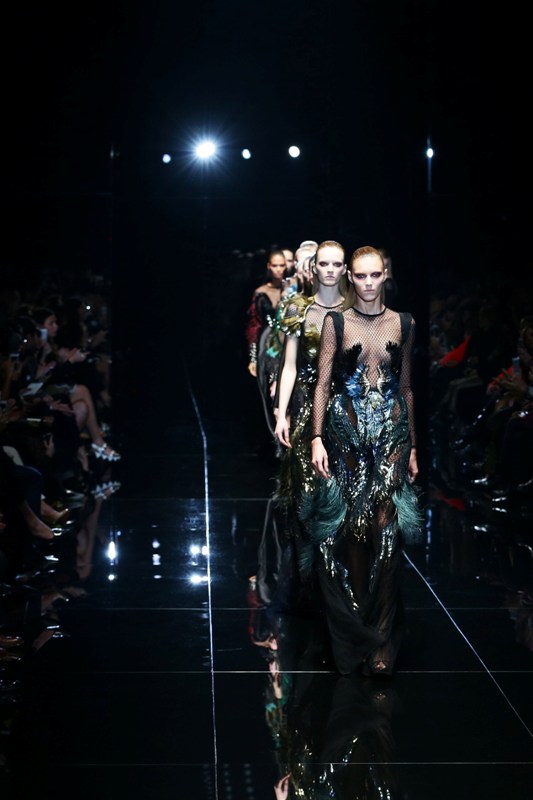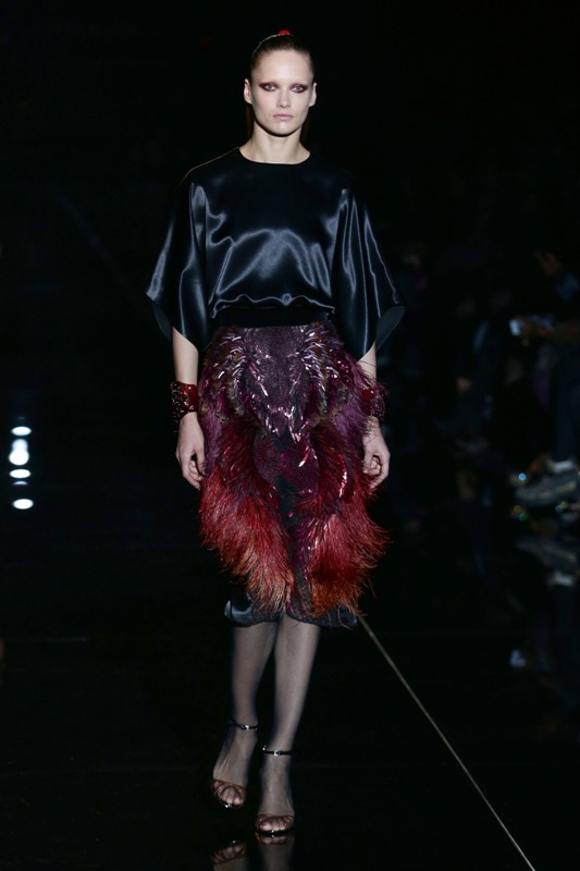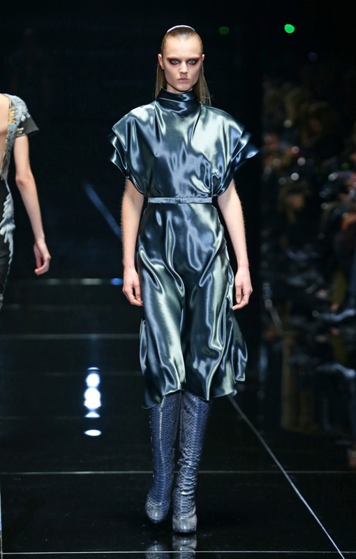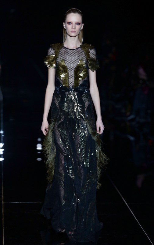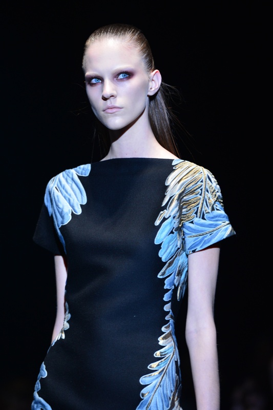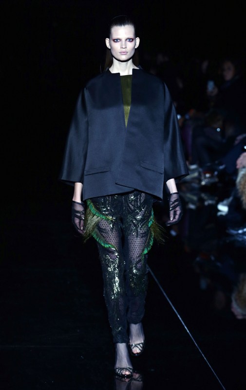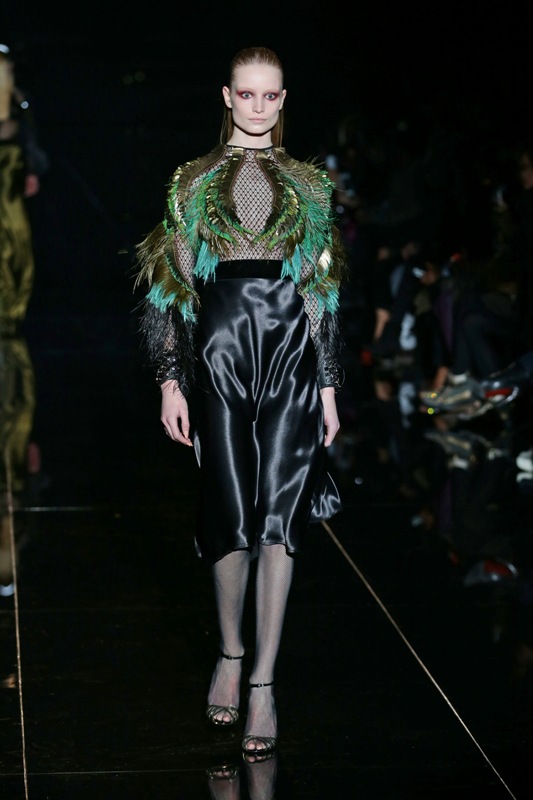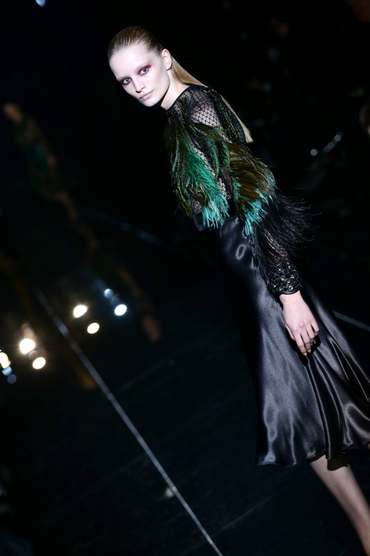 There were some really great looks on this runway, especially this green feather business attached. Wonder who will attempt it first. First person who came to mind, maybe because of the association, was Evan Rachel Wood.