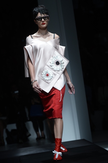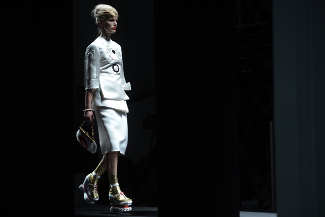 Appealing to the Asian market, obviously. Fine, but are these glorified slippers really fashion? What is the wearability of fur for spring/summer? Or, for that matter, many of these pieces? I mean, unless you’re Katy Perry.