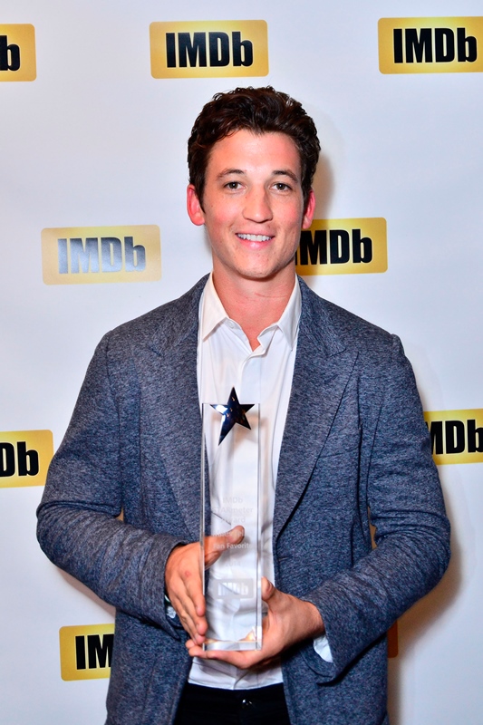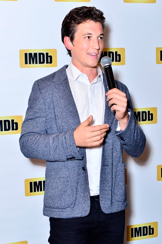 IMDB presented Miles Teller with the STARmeter award yesterday in Toronto where he was also premiering his film Whiplash. Whiplash was a big hit at Sundance and both Miles and JK Simmons have been receiving high praise for their performances. They celebrated last night at the Thompson Hotel rooftop. That was my first stop after my last carpet. It was a good party. They had a drum session going when I got there. JK was hanging out on the patio. Miles was, well, Miles was all business, all night.
