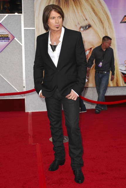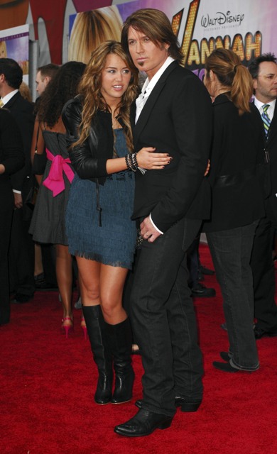 Mine was at home getting squawked at. JailBait Miley Cyrus’s was on the red carpet at the Hannah Montana movie premiere last night, spackled with a month’s worth of foundation, that f-cking soul patch freshly combed out, working the full douchebag pose in front of the cameras.