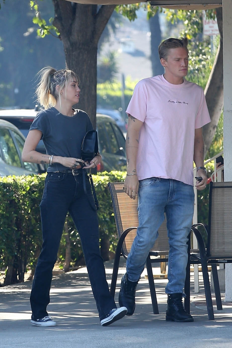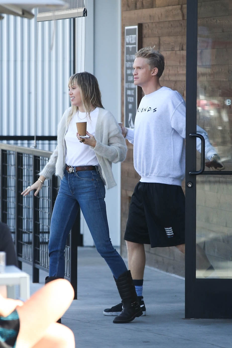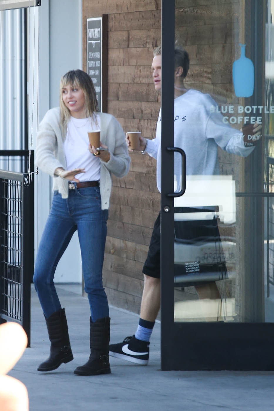 Attached: Miley shopping with her mom and on a coffee run with Cody on October 13, and having breakfast with both on October 12.