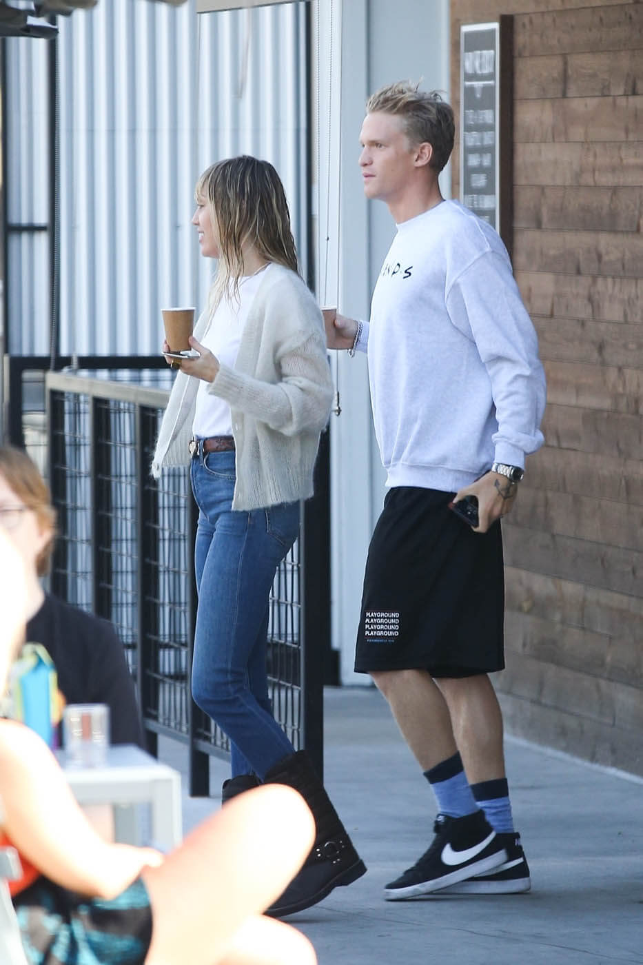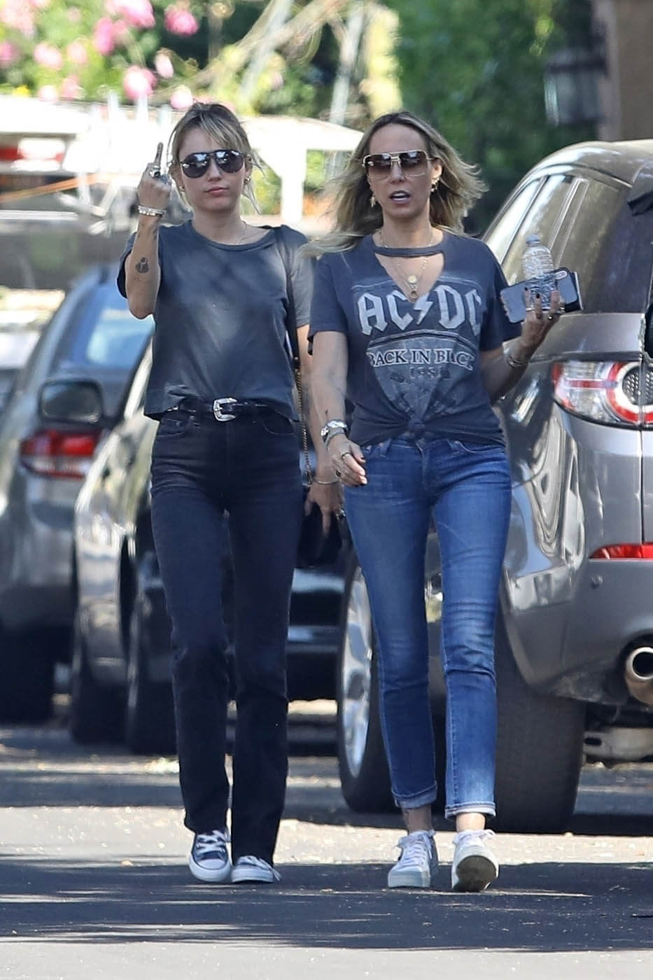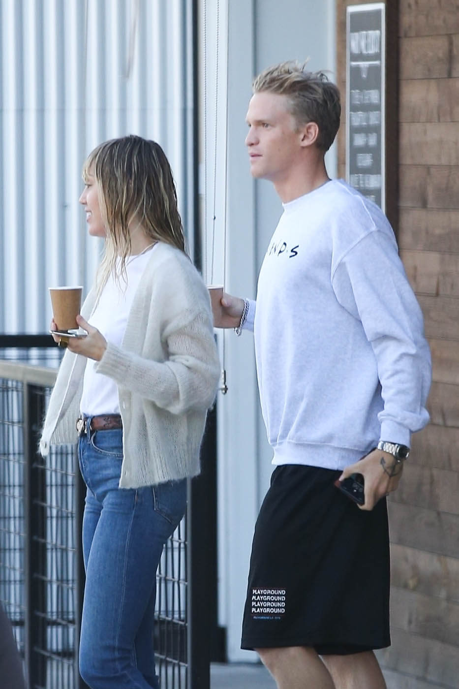 Attached: Miley shopping with her mom and on a coffee run with Cody on October 13, and having breakfast with both on October 12.