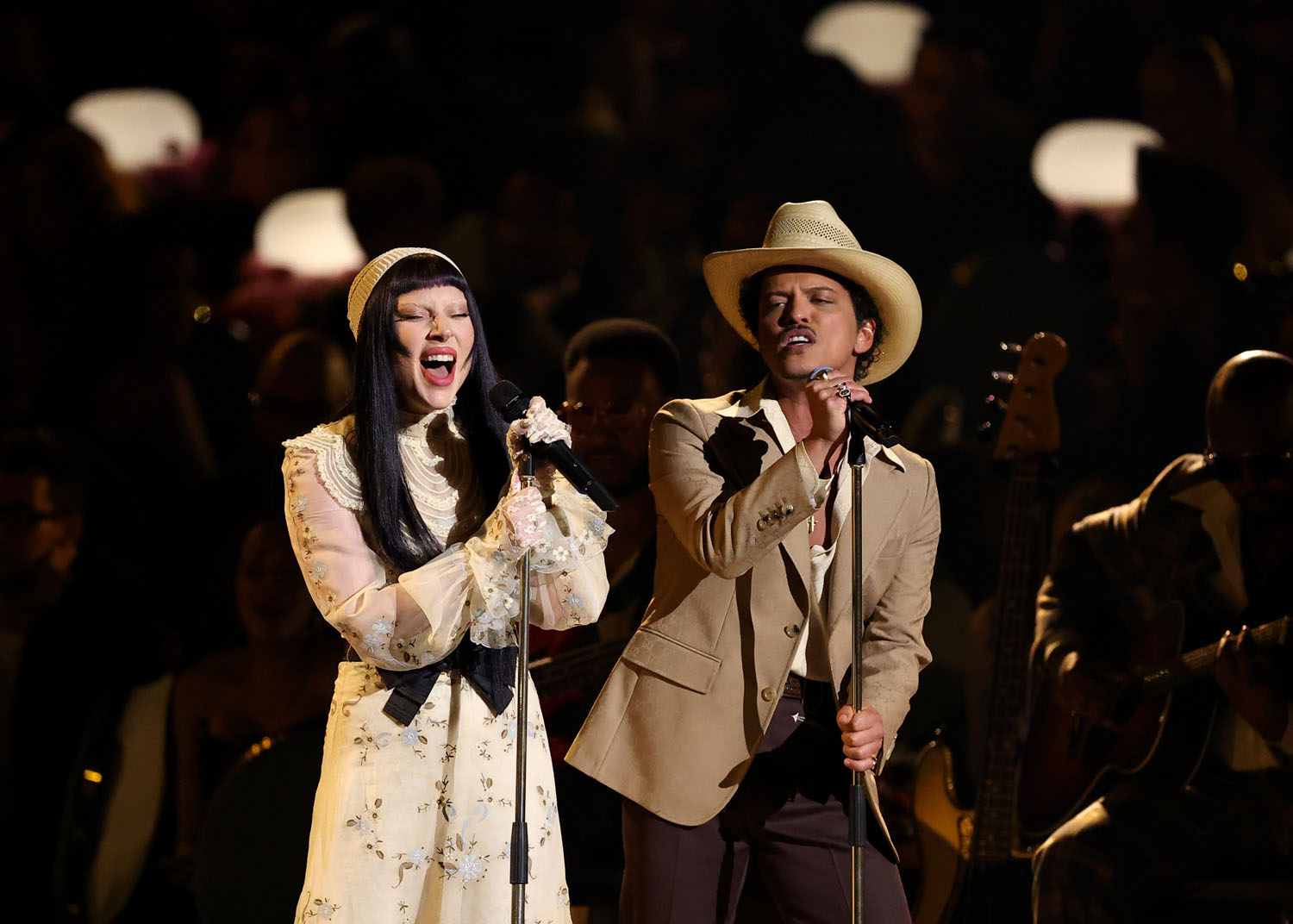 And then for her performance with Bruno Mars, “California Dreamin’”, it was Mother Monster goes to Woodstock, LOL.
